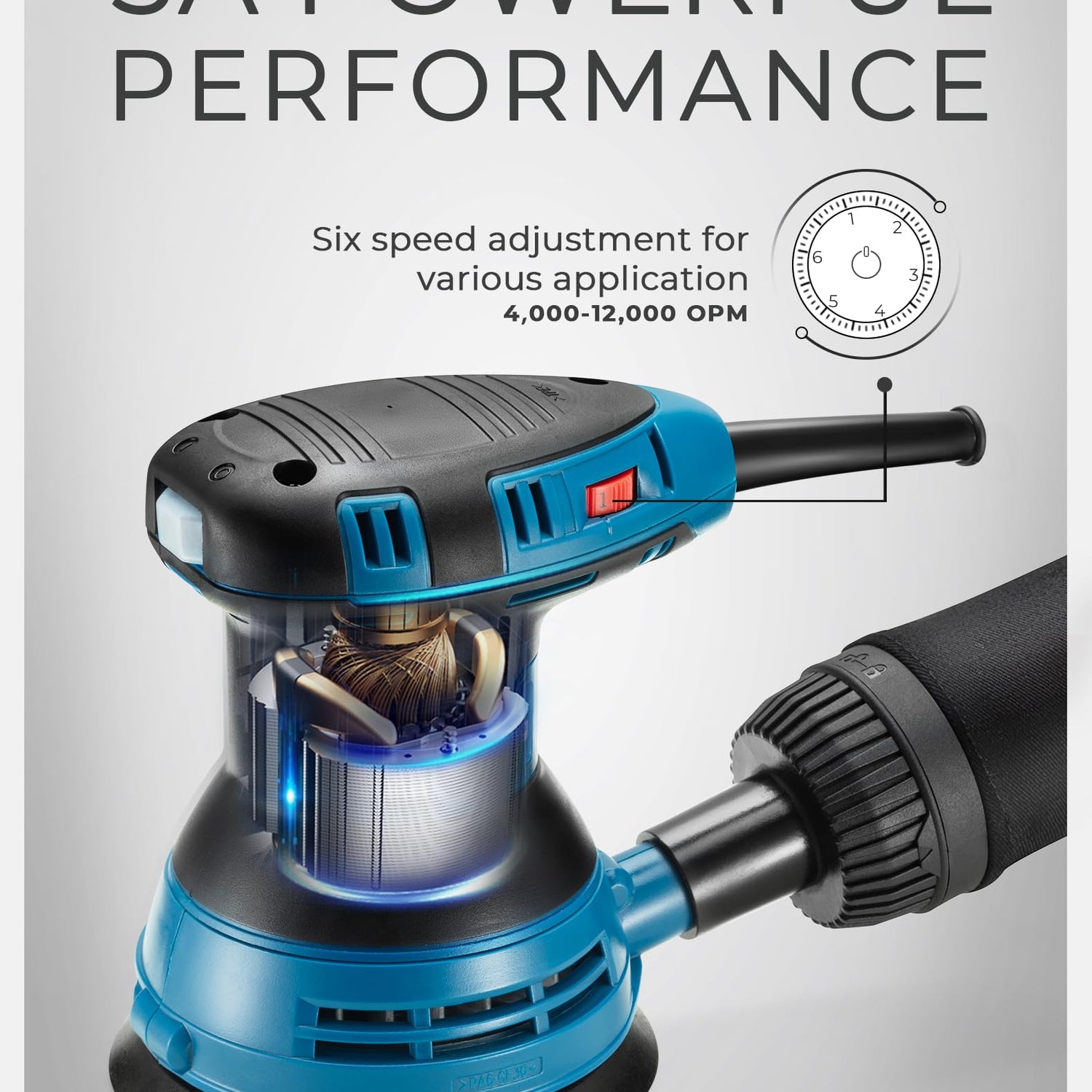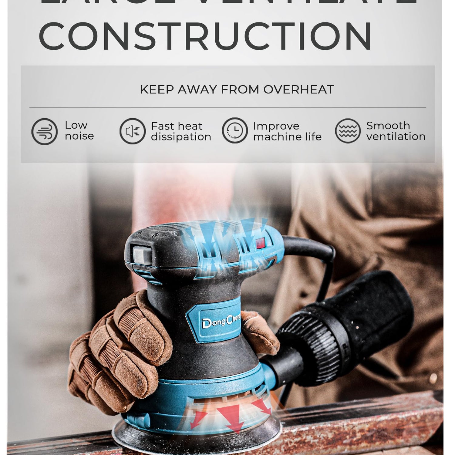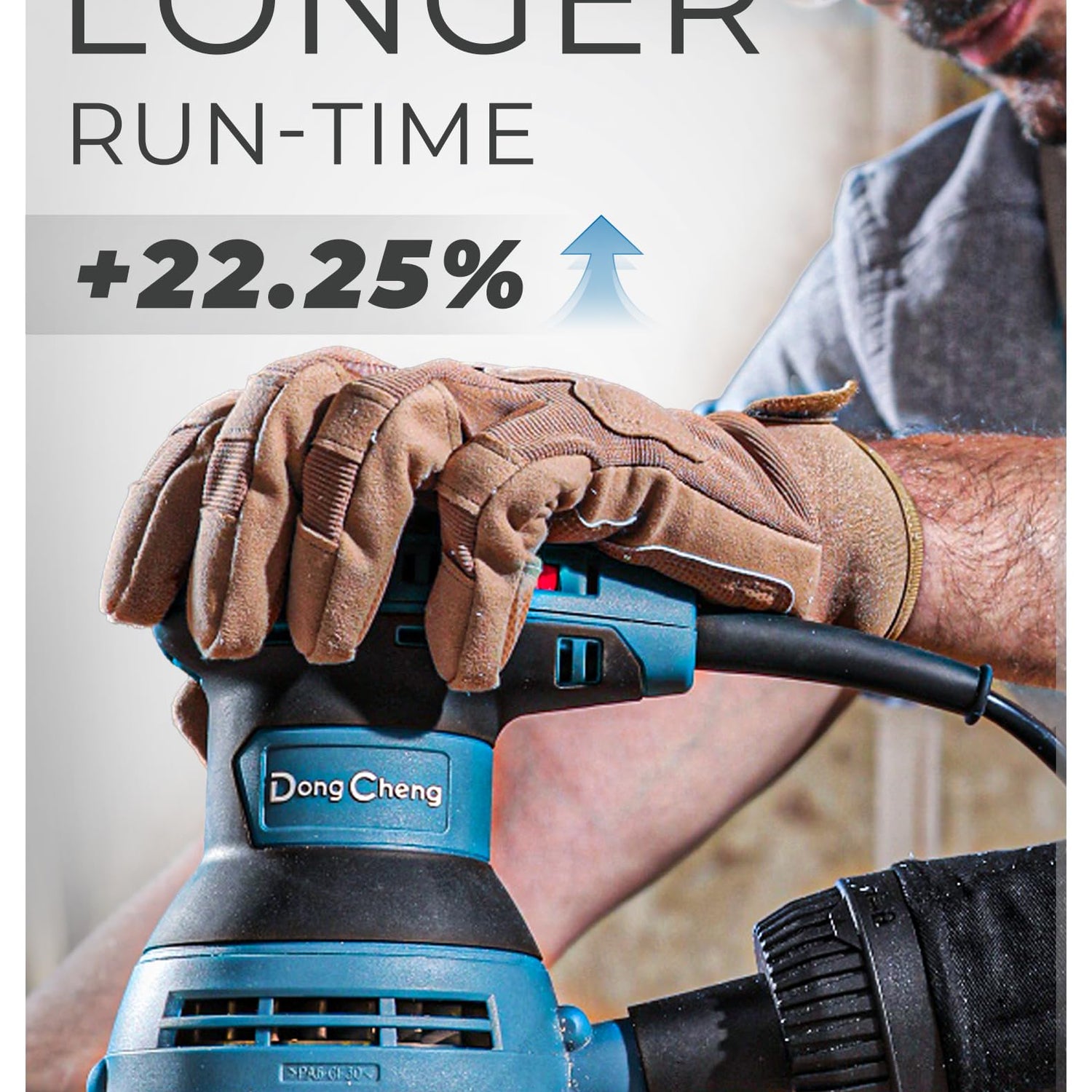 • Extended Lifespan - The unique structural design extends the lifespan of the 5" orbital sander by 22.5% compared to similar palm sander in practical use.