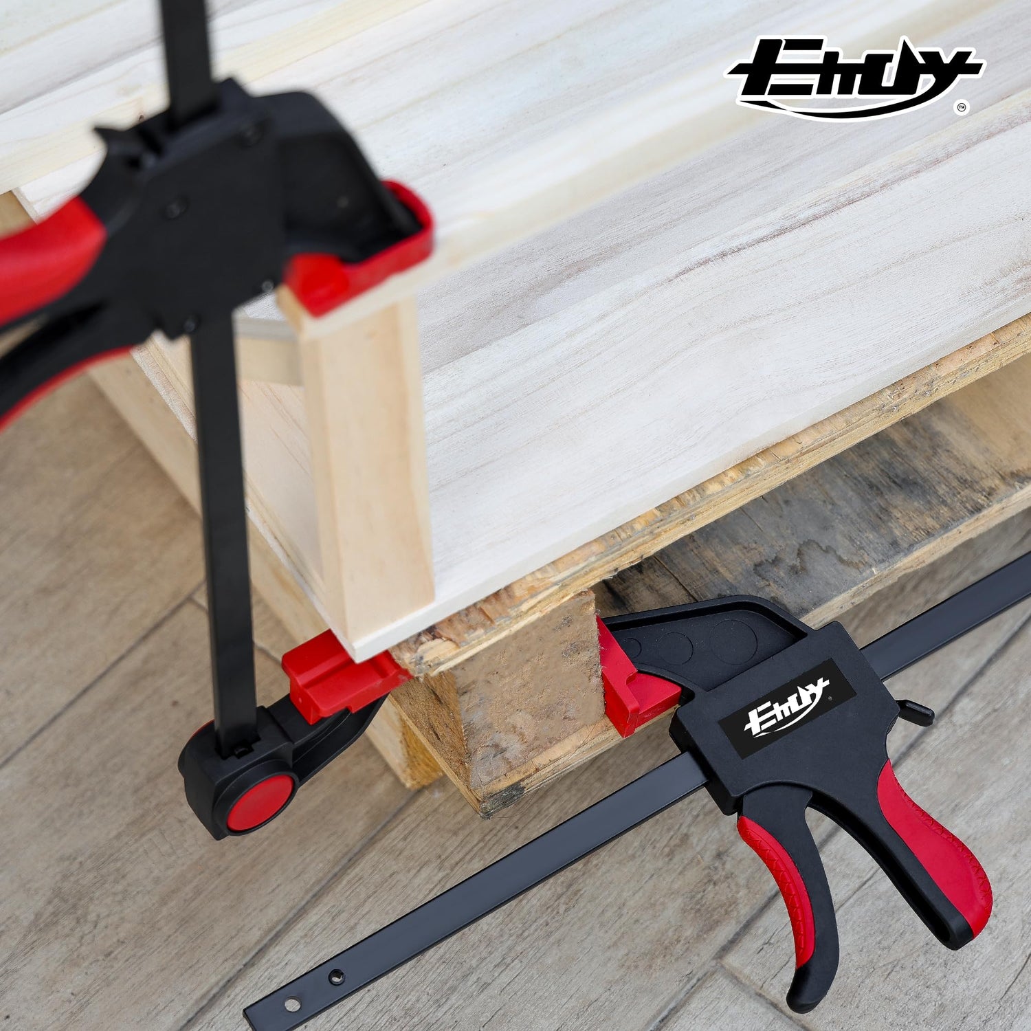 • QUICK-CLAMP: The quick-release latch makes it so easy to take them off your project or adjusts the fix in seconds. Larger pads provide a larger area of thrust surface. More balanced force and parallel clamp.