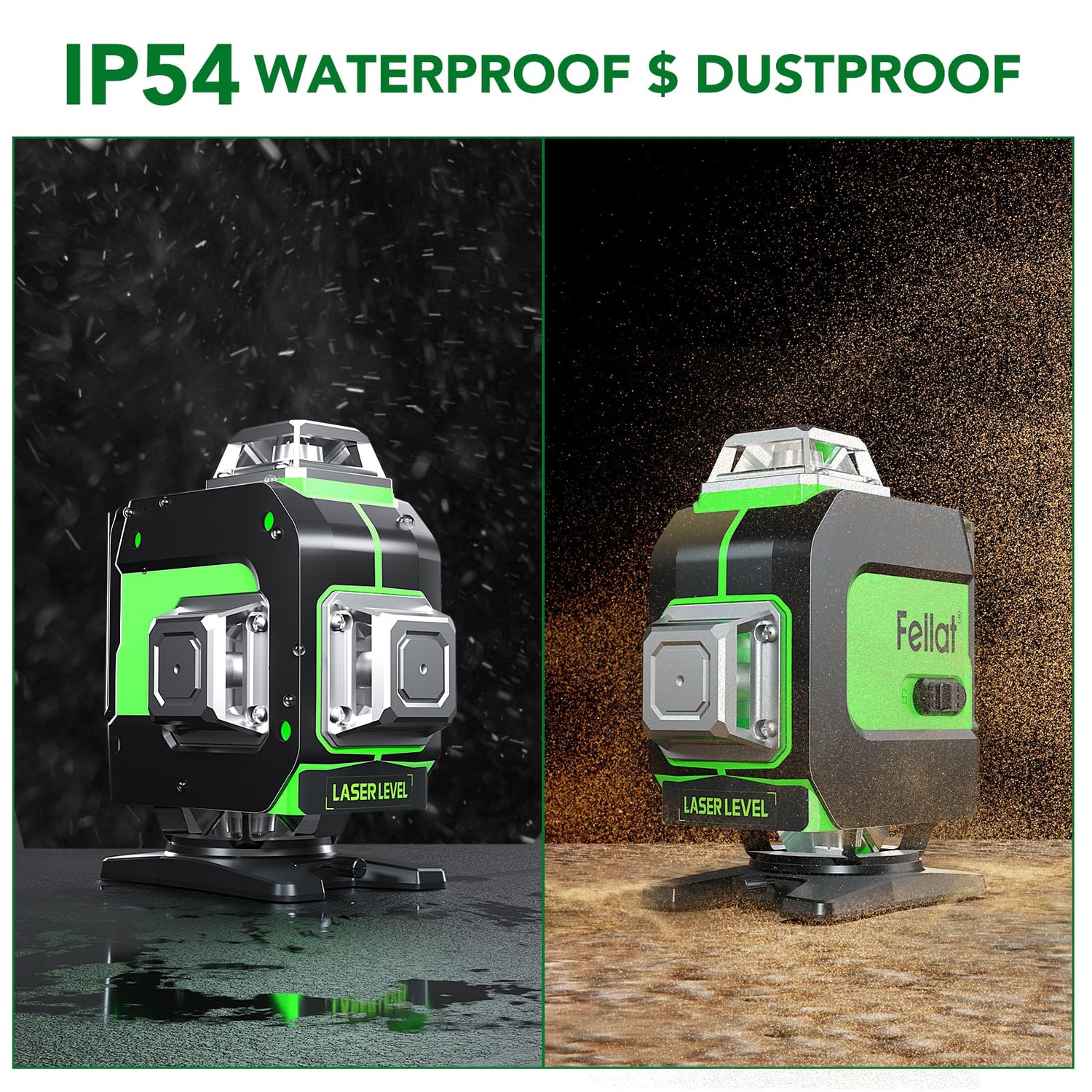 • 【Laser Level 4x360° Self Leveling】FELLAT Laser level tools offers 4 * 360° planes for floor and wall mounting, the green laser horizon is 4 times brighter than the red beam and can provide up to 10 feet of working distance for indoor and outdoor use.safety level-Class II, <1mW power output.