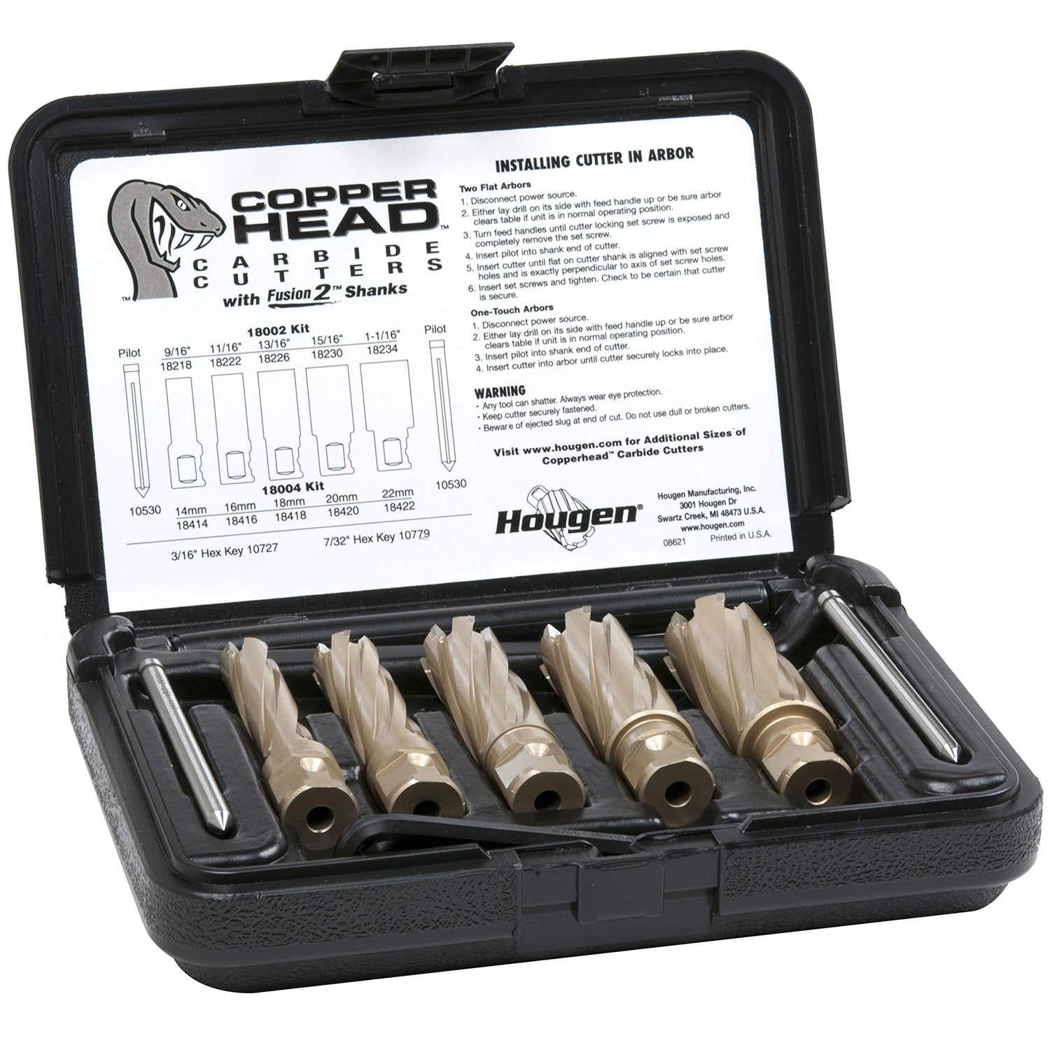 Hougen 18002 Copperhead Carbide Annular Cutter Kit 9/16, 11/16, 13/16, 15/16, 1-1/16" 2-Inch Depth of Cut 3/4-Inch Weldon Shank and Fusion2 Shank For Magnetic Drills