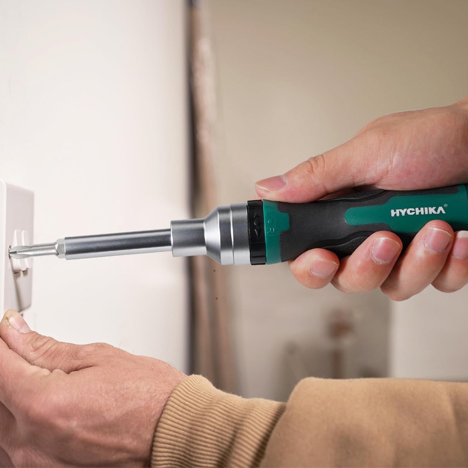 HYCHIKA Screwdriver Set 16-in-1 Ratcheting Screwdriver, Screw Driver Multi Bit All in One with Phillips, Slotted, Torx, Square, Hex bit and Double End Nut Driver