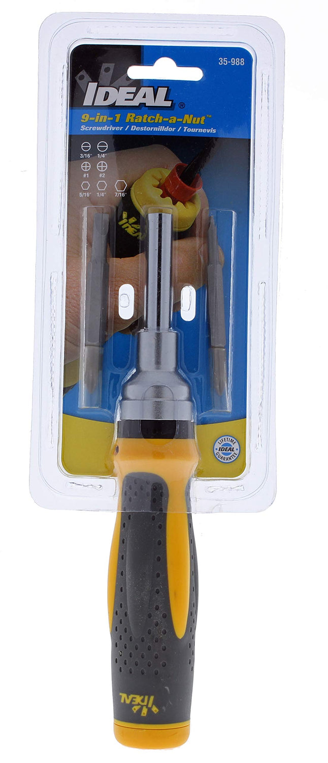 IDEAL Electrical 35-988 Ratch-A-Nut Screwdriver 9-In-1 Ratcheting Nut Driver with Screwdriver, Driver Bit Sets