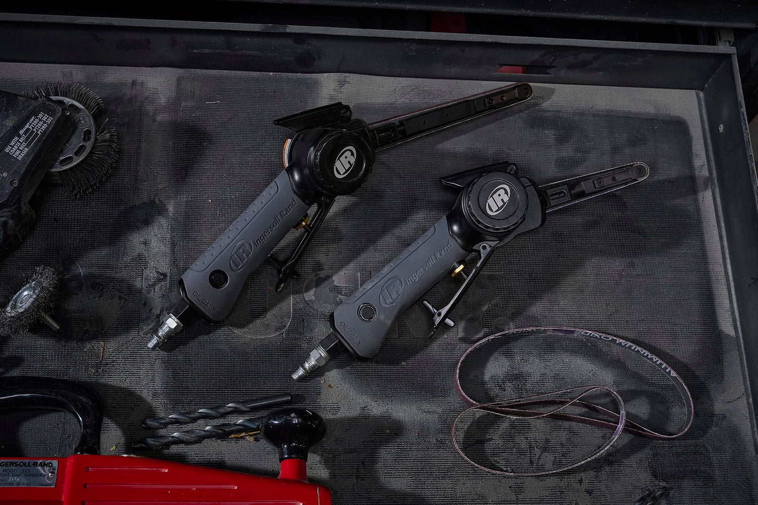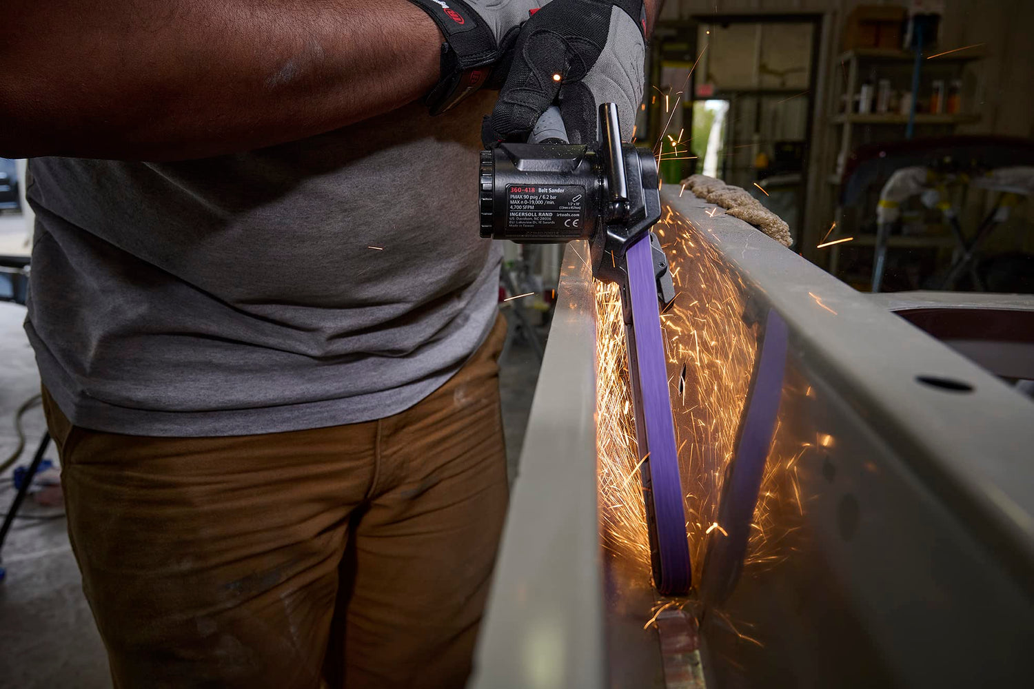 Details: The Ingersoll Rand 360-418 Pneumatic Belt Sanders are engineered to make quick work of material remove and deliver smooth finishes. Whether removing spot welds, rust, deposits, or burrs; or fine-tuning a finished surface, these tools get the job done fast with a 0.6HP motor - 20% more than the leading competitor. Increase your productivity with tool-free belt changes that make switching from one abrasive to the next quick and convenient, as well as a tool-free articulating arm that ensures every nook and cranny is easily reached.