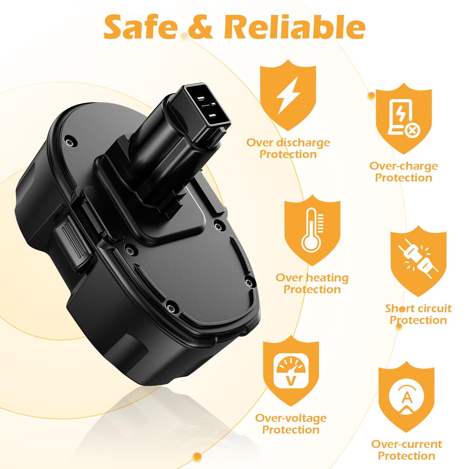 - 【Battery Features】Battery Voltage:18V | Battery Capacity: 5000mAh | Wattage: 90Wh | Battery Type: Rechargeable Ni-MH | Made with high quality cells. Compatible with dewalt 18vcordless tools.