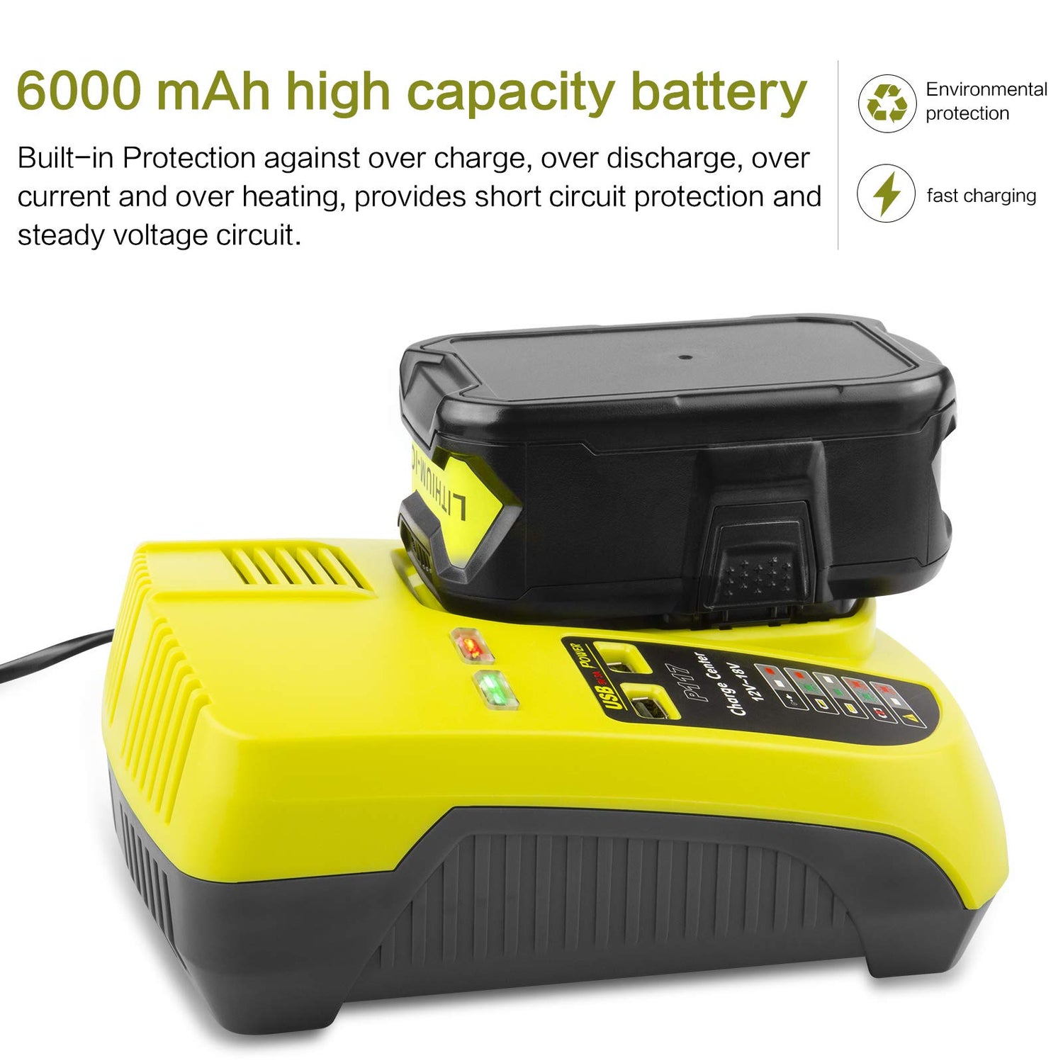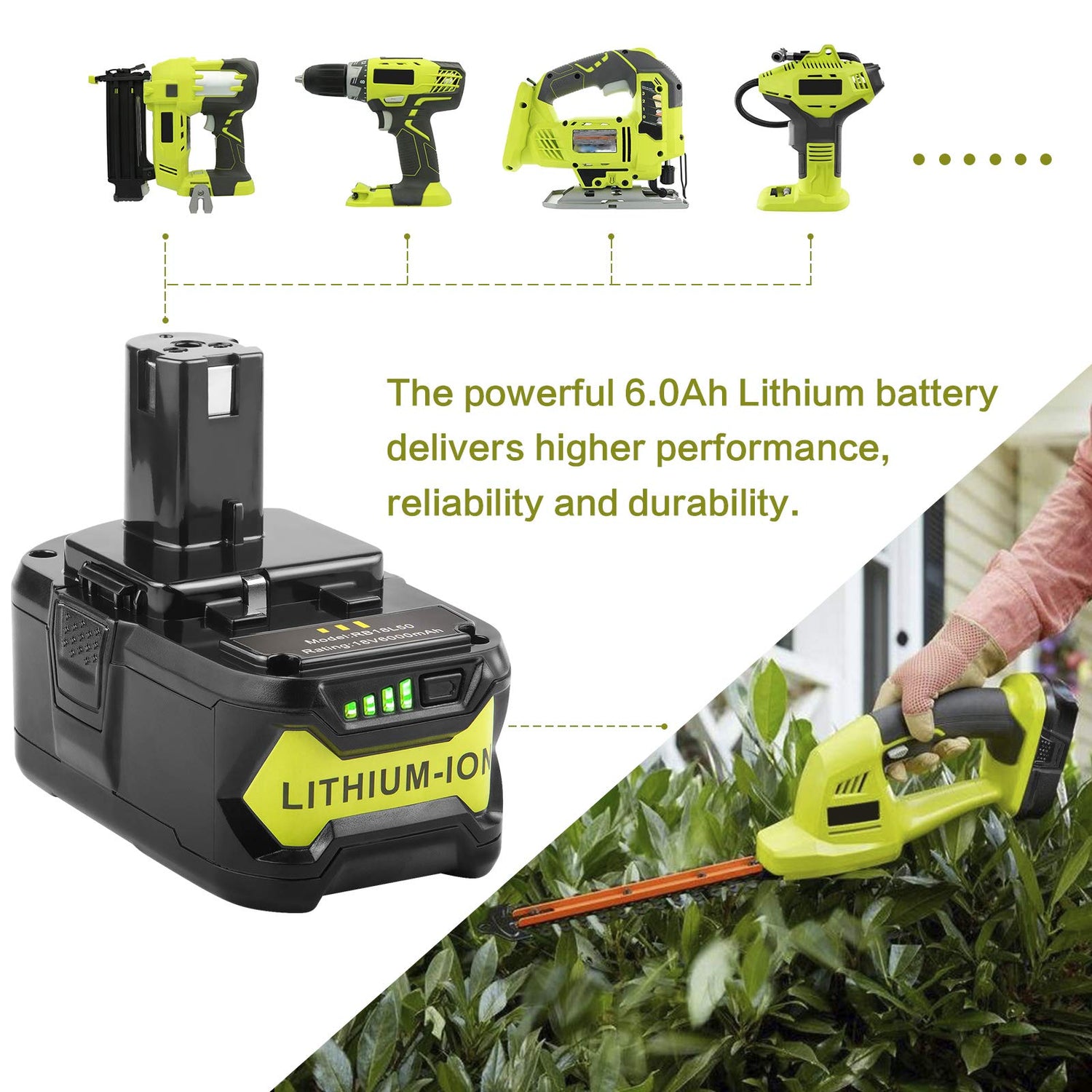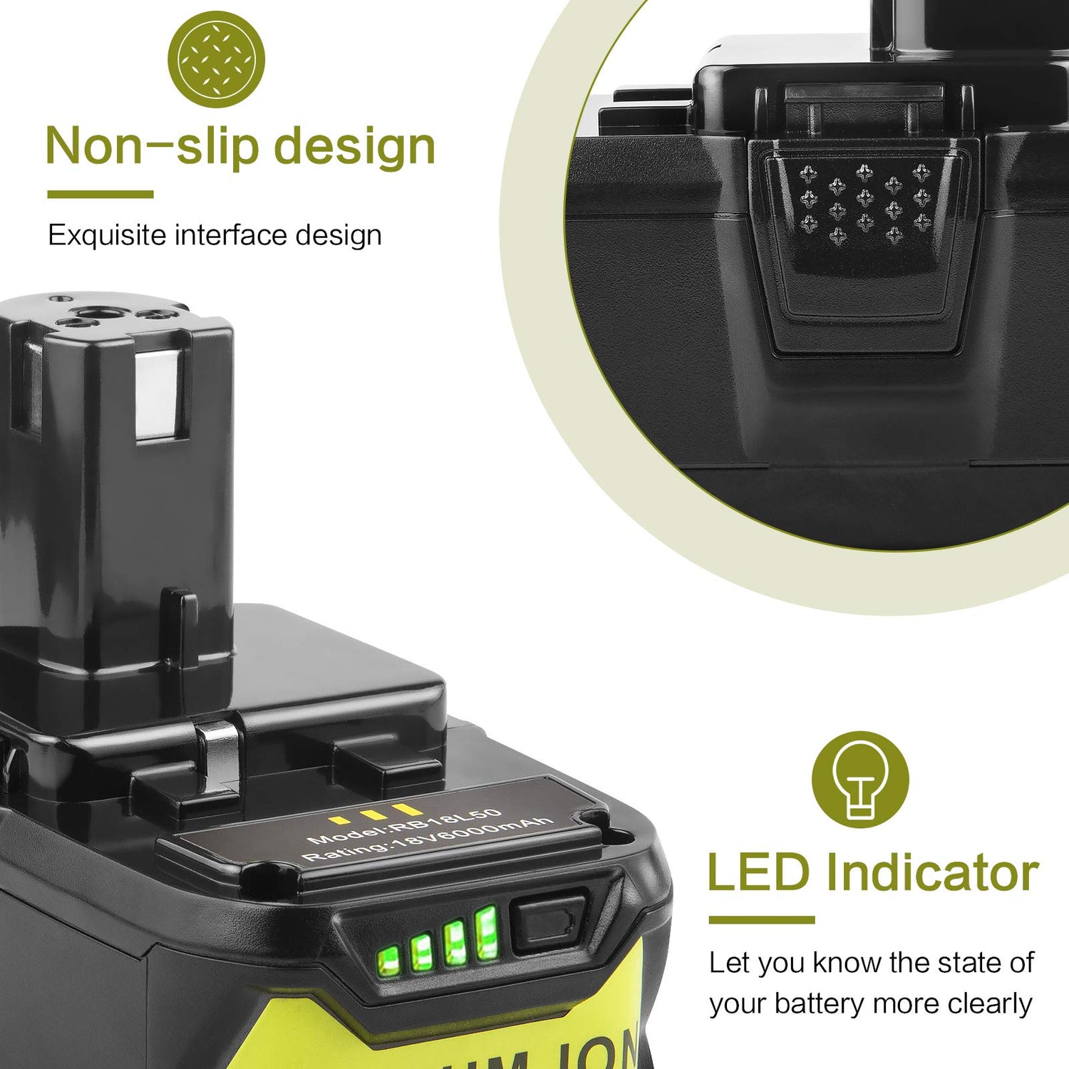 LabTEC RB18L50 18V 6000mAh Lithium Battery Compatible with Ryobi 18V BPL-1815 BPL-1820G BPL1820 BPL18151 P102 P103 P104 P105 P107 P109 P122 Cordless Power Tools with LED Indicator