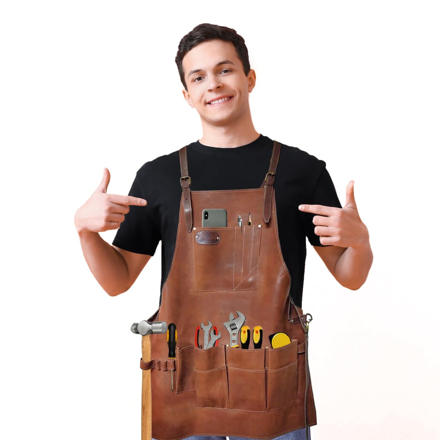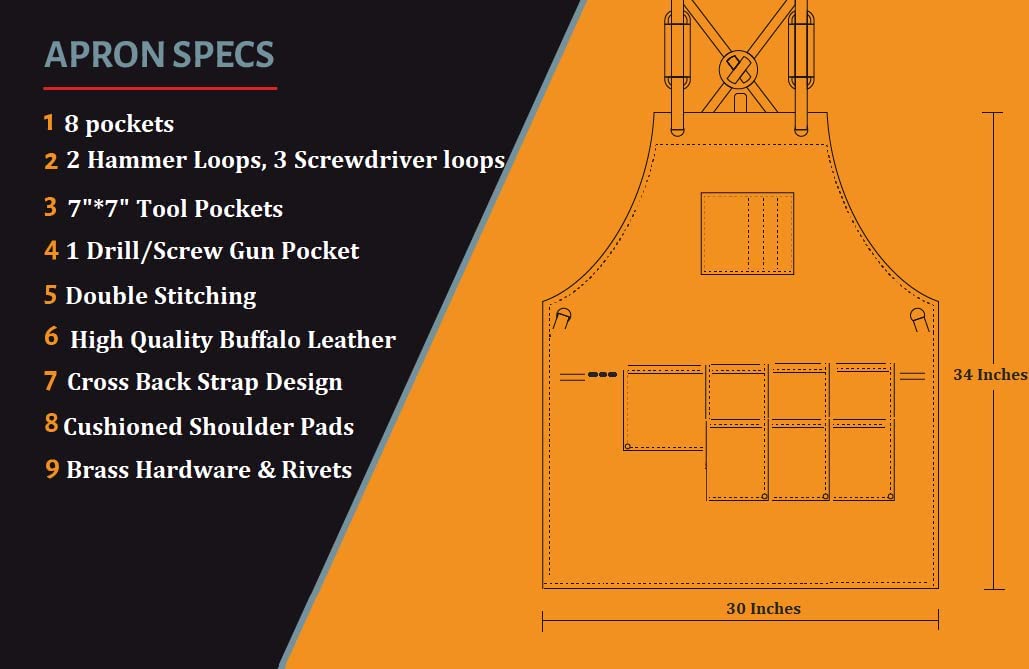 - ✅ HIGH QUALITY LEATHER: Leather Tool apron, Made of thick buffalo leather for extra durability and strength. It weights 4.2 lbs. and can carry upto 80 lbs. weight