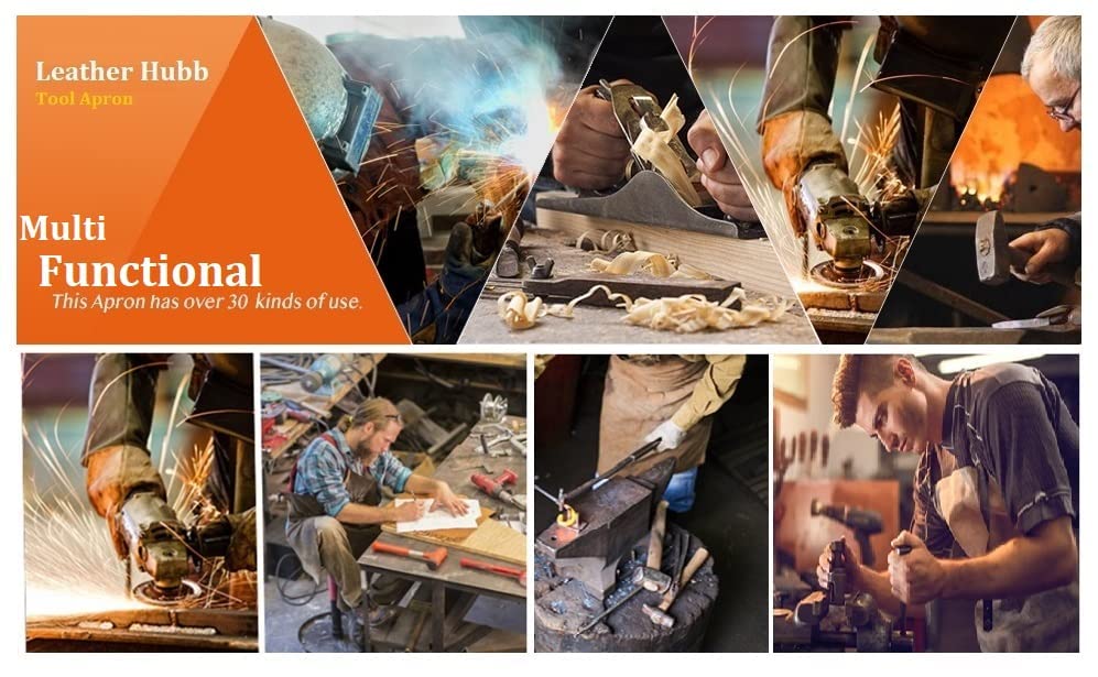 Leather Hubb 8-Pocket Leather Tool Apron Electrician Apron, Carpenter Apron, Tool Pouch, Apron for Welding, Blacksmith, Woodworking, BBQ Apron | Heat & Flame Resistant | Adjustable 33” to 54”