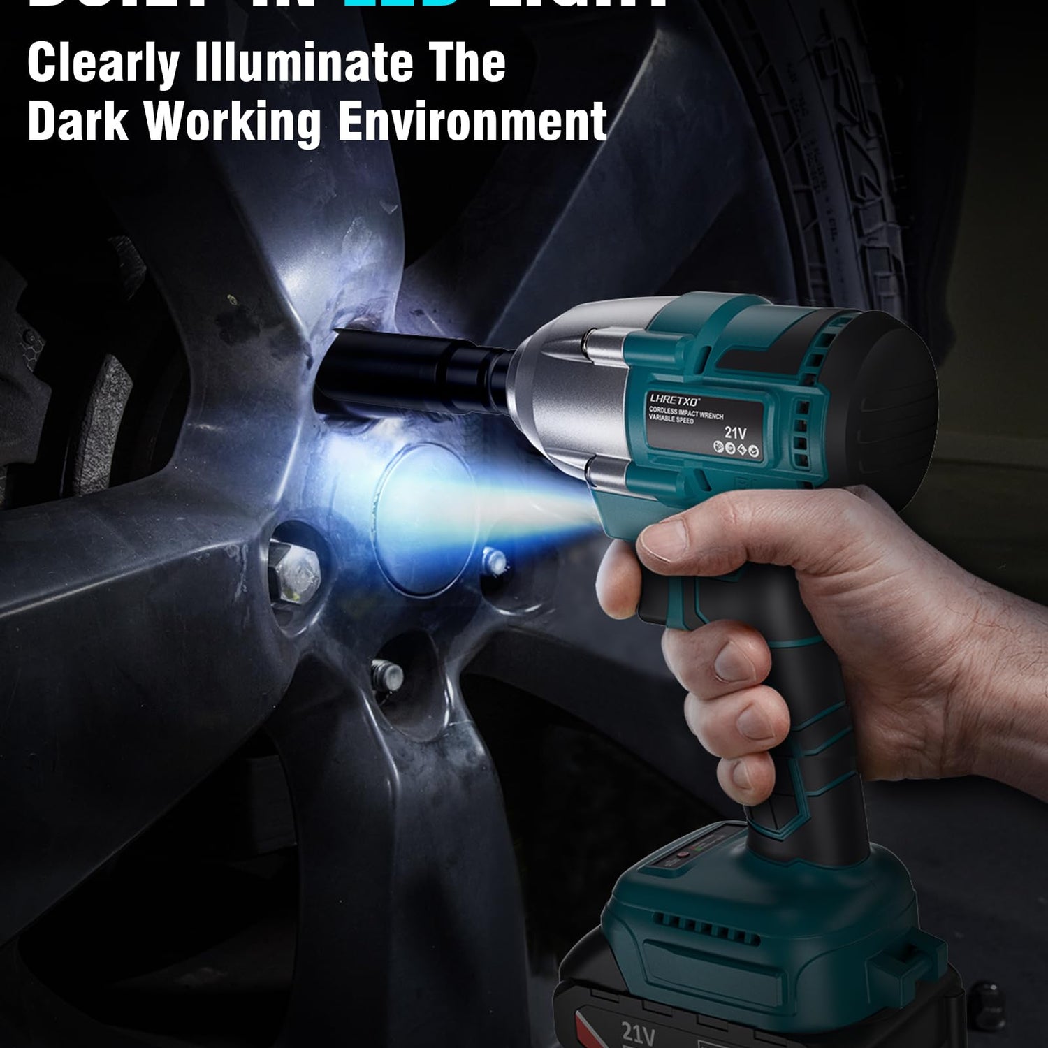 - BUILT-IN LED LIGHT and ERGONOMIC DESIGN - The cordless impact gun/cordless impact driver for Lug Nuts has an LED light, that illuminates the work area, improving visibility in dimly lit spaces. The compact design and ergonomic grip make it comfortable to use for extended periods. This compact impact wrench ensures optimal performance while prioritizing user comfort and efficiency.