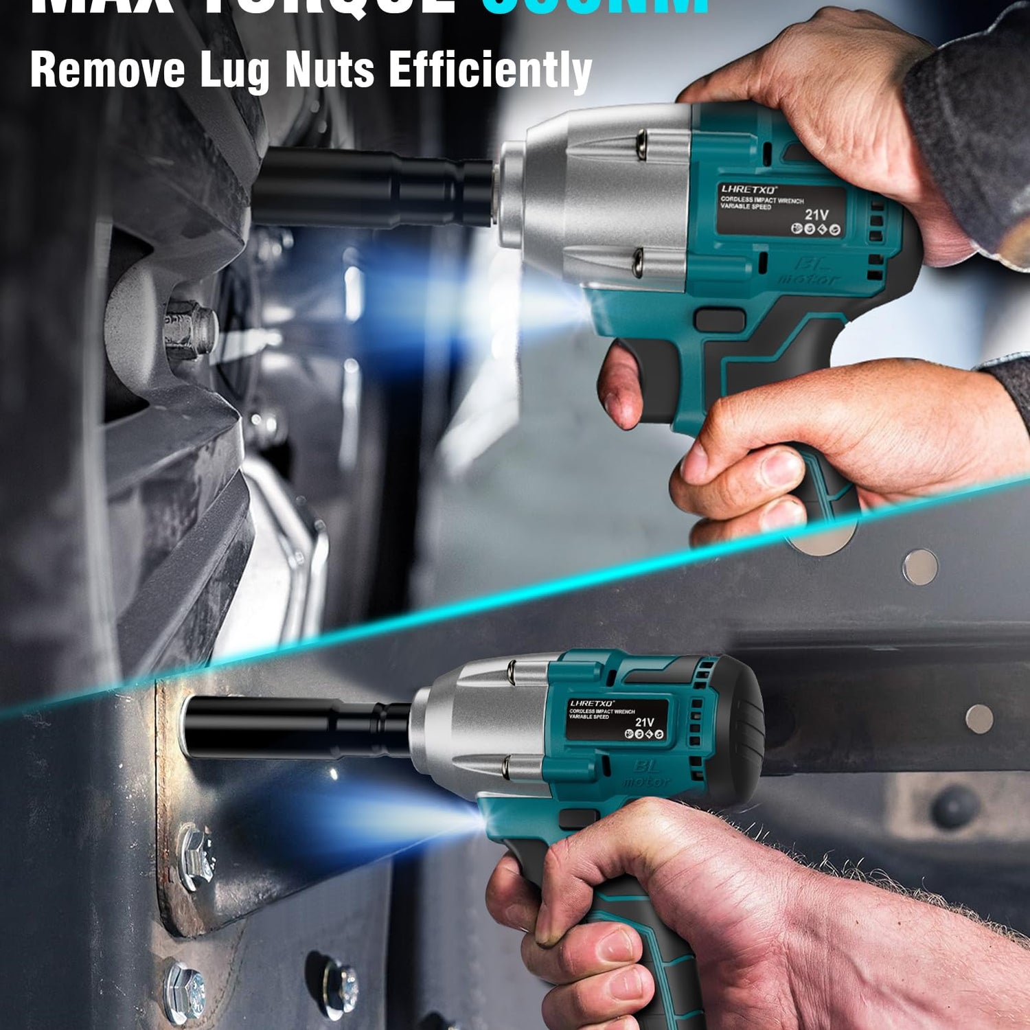 - CORDLESS IMPACT GUN for LUG NUTS- This 1/2" impact wrench providing a MAX breakaway torque of 258 Ft-lbs/350 Nm output with a powerful brushless motor, it can quickly loosen or tighten wheel nuts, greatly improving the efficiency of tire changing or other related work, and cordless impact wrench can also be used for other fasteners that require high torque.