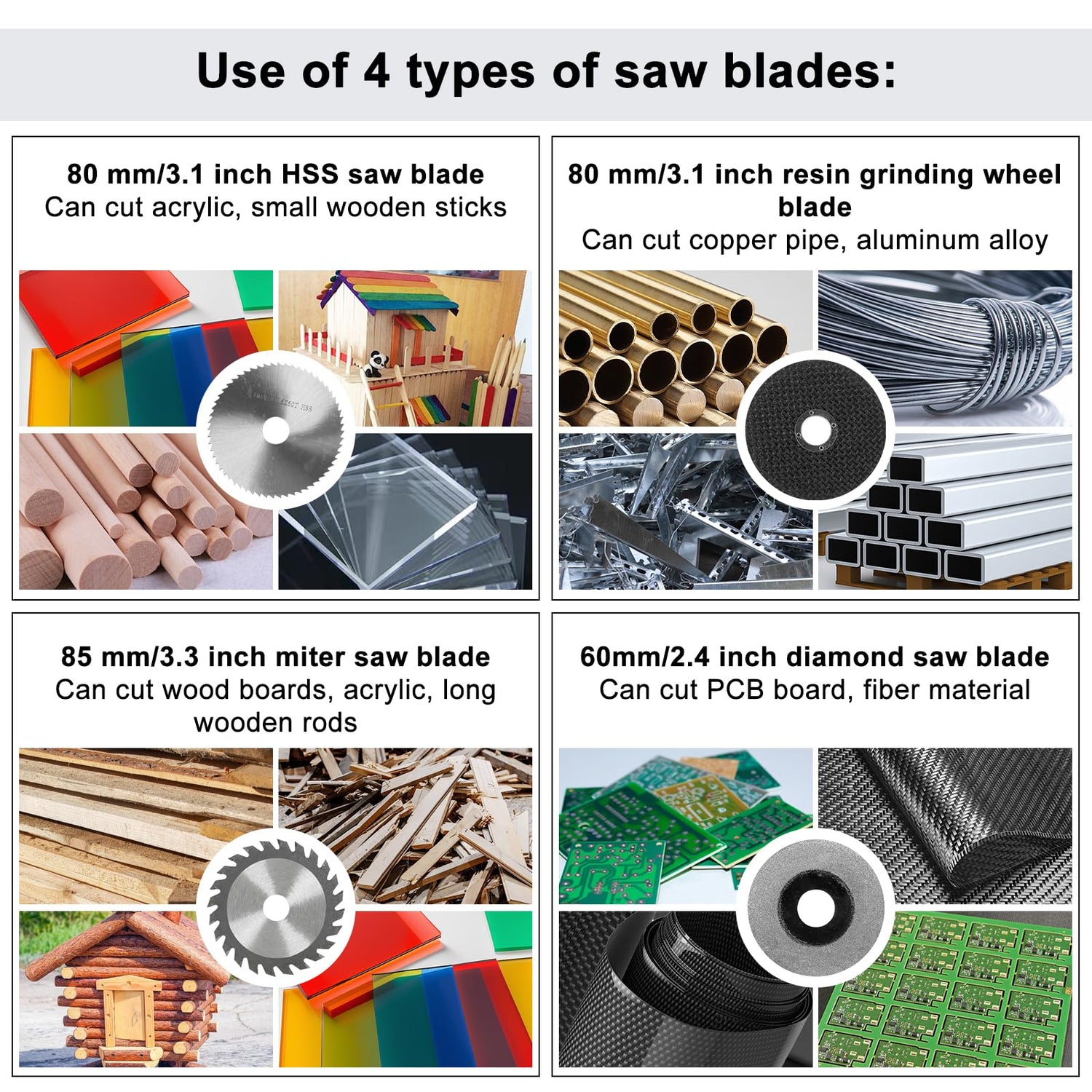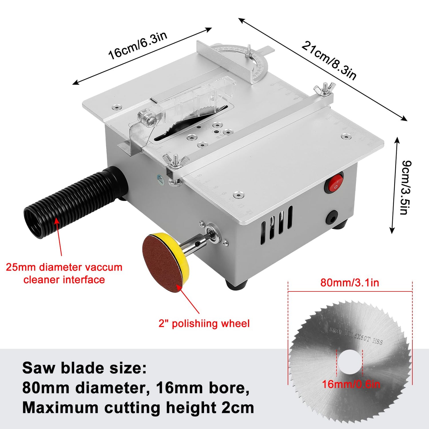 - 【Wide range of applications】 This mini table saw table saw is designed for small objects and is suitable for model making, craft workshop, hobby development and research. It is suitable for cutting printed circuit boards, small wooden rods, acrylic, copper pipes, thin wooden boards and aluminum alloys. It meets your diverse requirements, has a long service life and is safe to use!