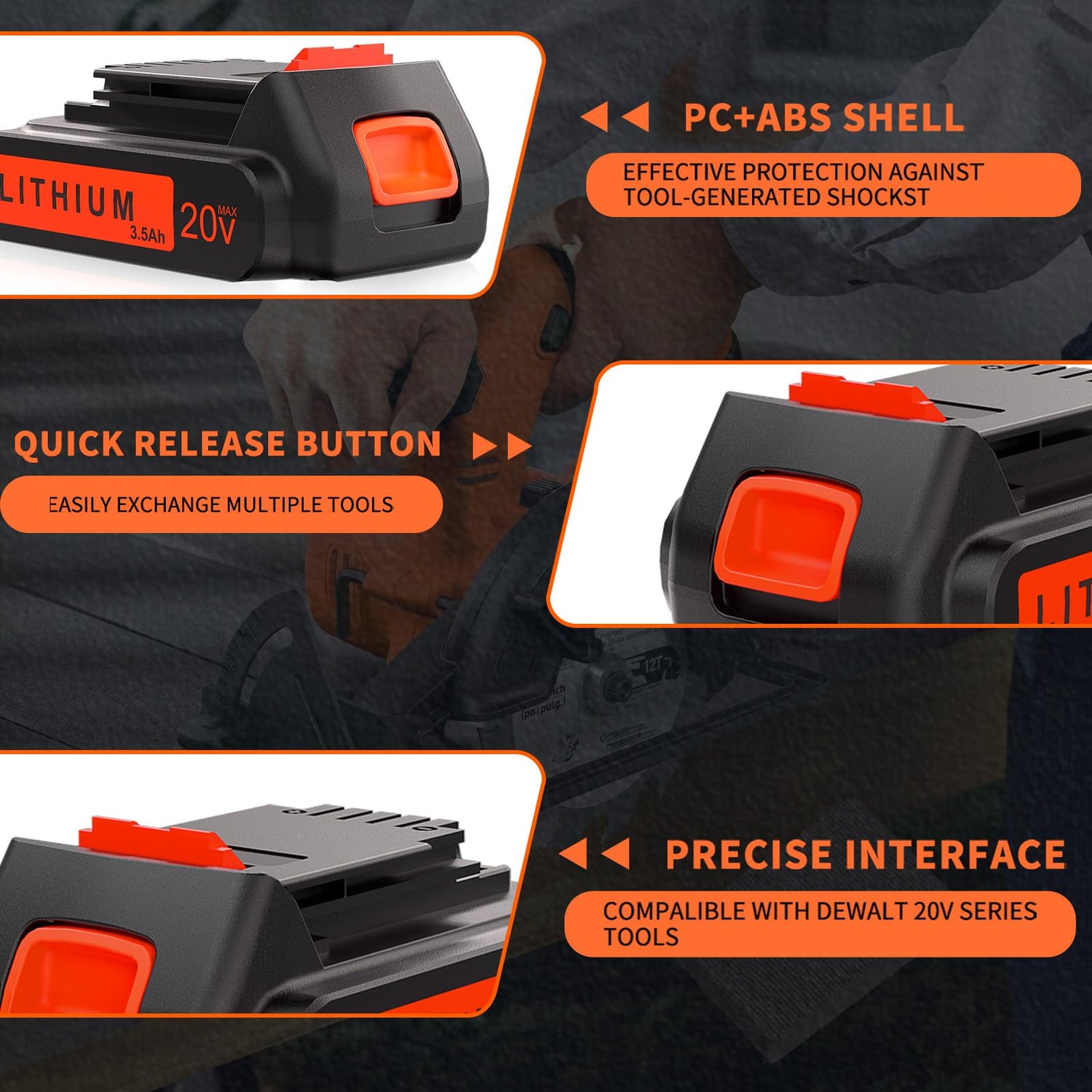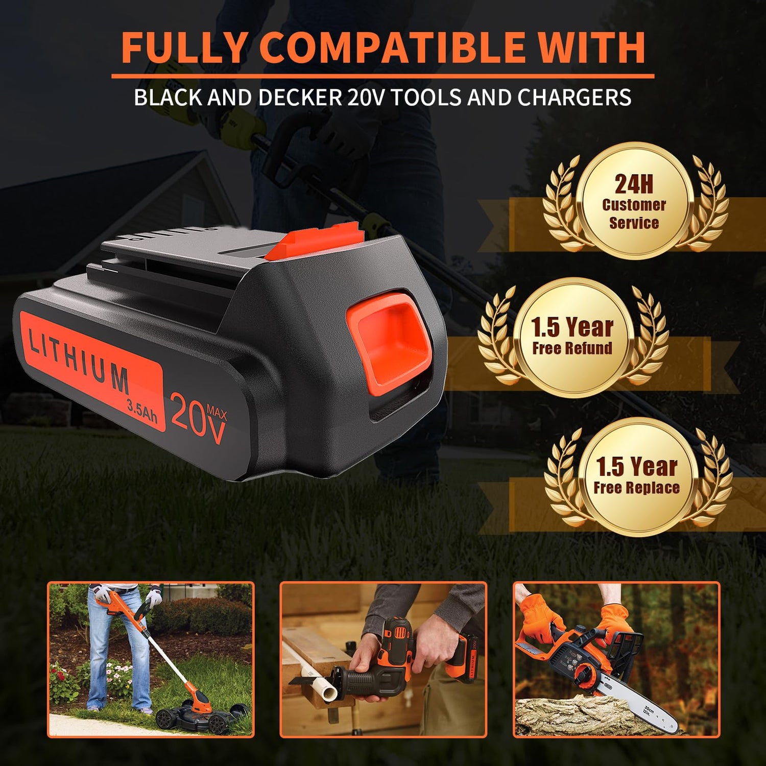 - LONG LASTING POWER - Replacement 20V Black and Decker battery with high-capacity (3500mAh), excellent power generated and longer run time on Black and Decker 20V tools, and without replacing battery frequently during work, improve work efficiency. Exceptional build quality and ability to withstand heavy usage over extended periods.