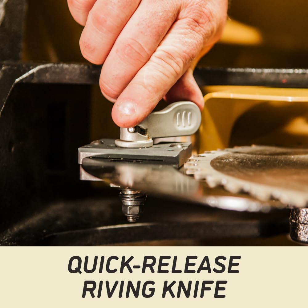 - Adjustable angle indicators on the blade bevel scale ensures repeatable bevel cuts