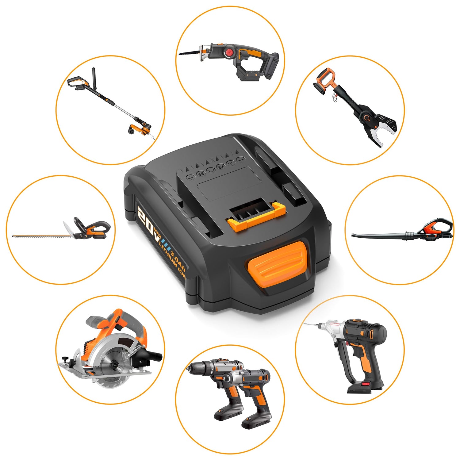 - Package: 2 Packs 3.0 Ah Replacement batteries for 20 Volt Batteries and noise-cancelling earplug, replace for all 20V batteries WA3520 WA3525 WA3575, not compatible with 20v cordless tools