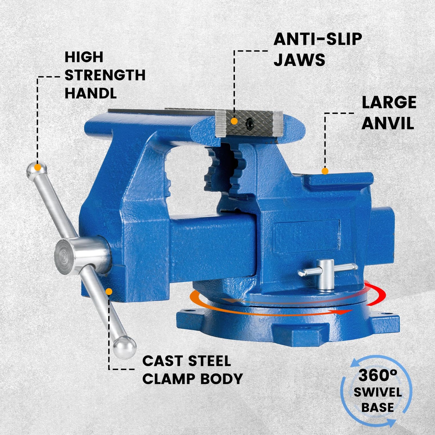 • Heavy-Duty Construction: The Ruperte 6" Bench Vise is built with durability in mind, featuring a robust ductile iron construction. This heavy-duty design ensures longevity and reliability, making it a dependable tool for a variety of applications.
