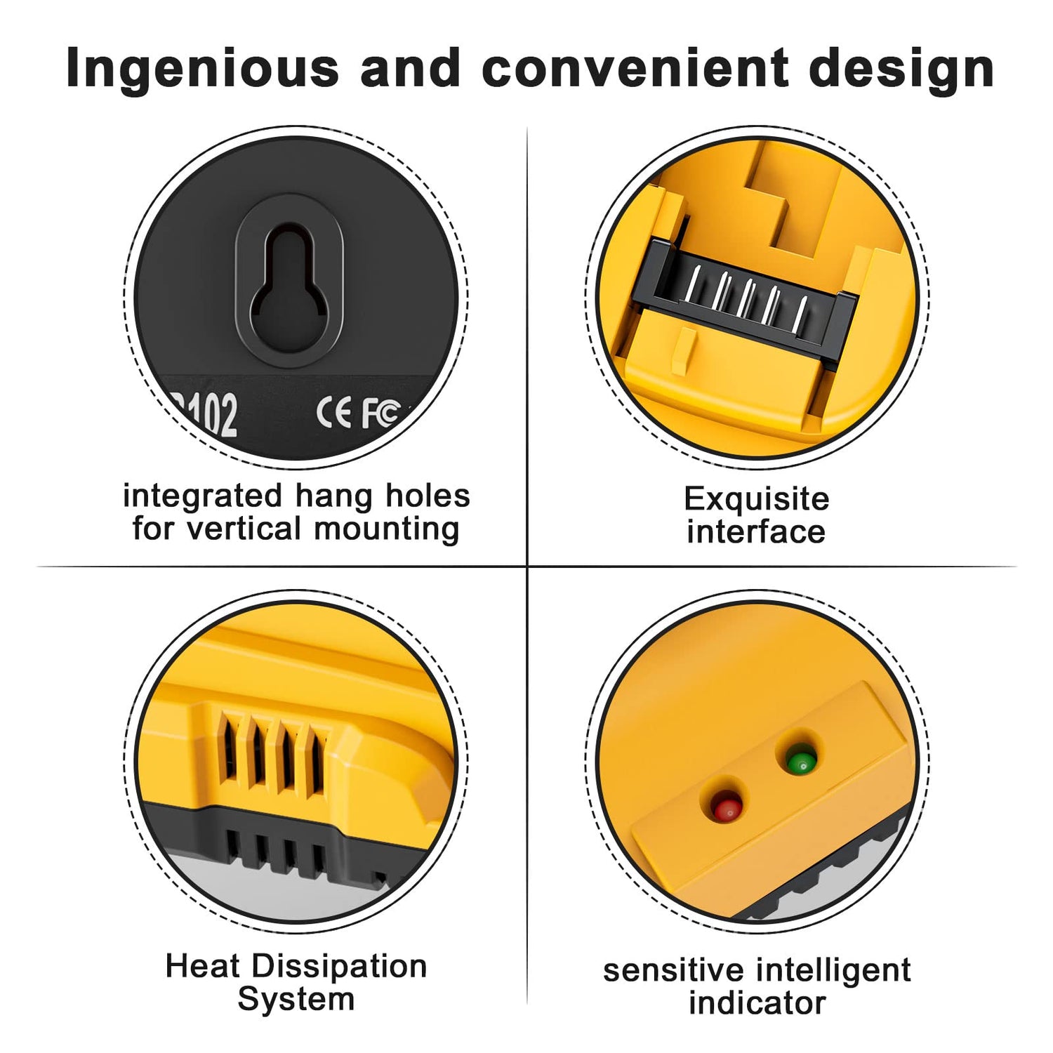 • Full Compatibility: This battery charger is compatible with dewalt 12v 20v battery DCB120 DCB124 DCB127 DCB200, etc. Meanwhile, it is also a replacement for Dewalt 20v battery charger DCB104 DCB107. DCB112 DCB115 DCB118, etc. It can perform as well as the original battery charger to quickly charge your batteries.