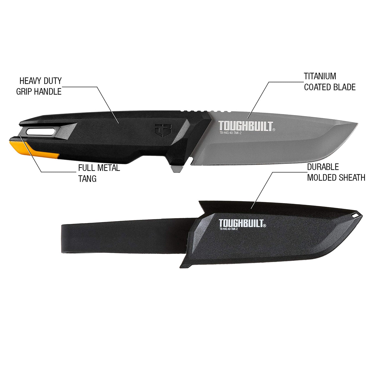 ToughBuilt Tradesman Knife with Sheath, 4” Titanium Drop Point Blade | TB-H4S-40-TMK-2