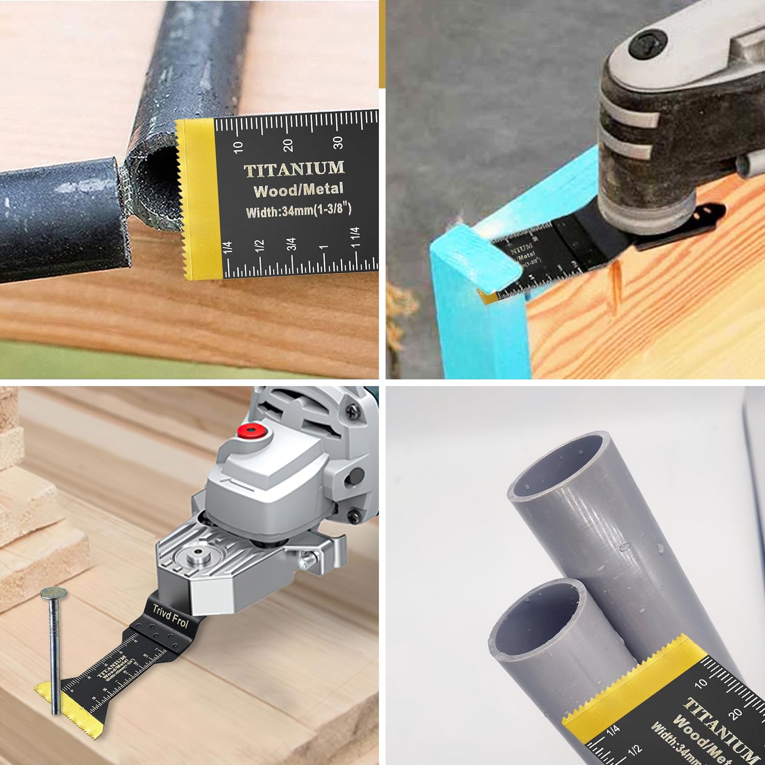 - 【Wide Range Of Use】: Titanium plated oscillating blades can be used for building branches, house decoration, door frame floor cutting, metal cutting, and plastic cutting to meet your various cutting needs, which could be used professionally for workshop ,household or other place.