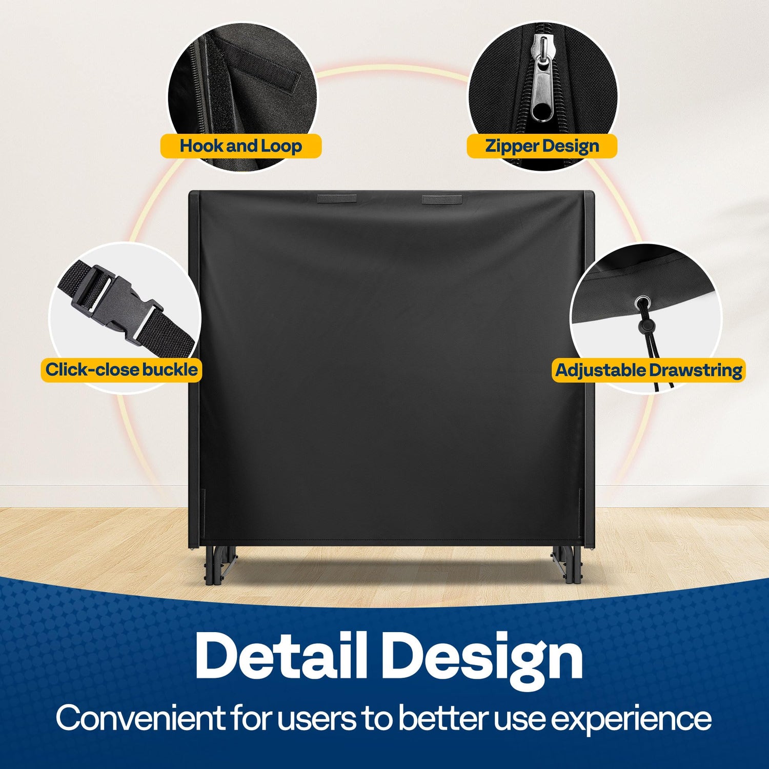 • EASY TO SET UP- Portable handles on both sides designed to quickly place and remove. Sticker closures fix and adjust tightness