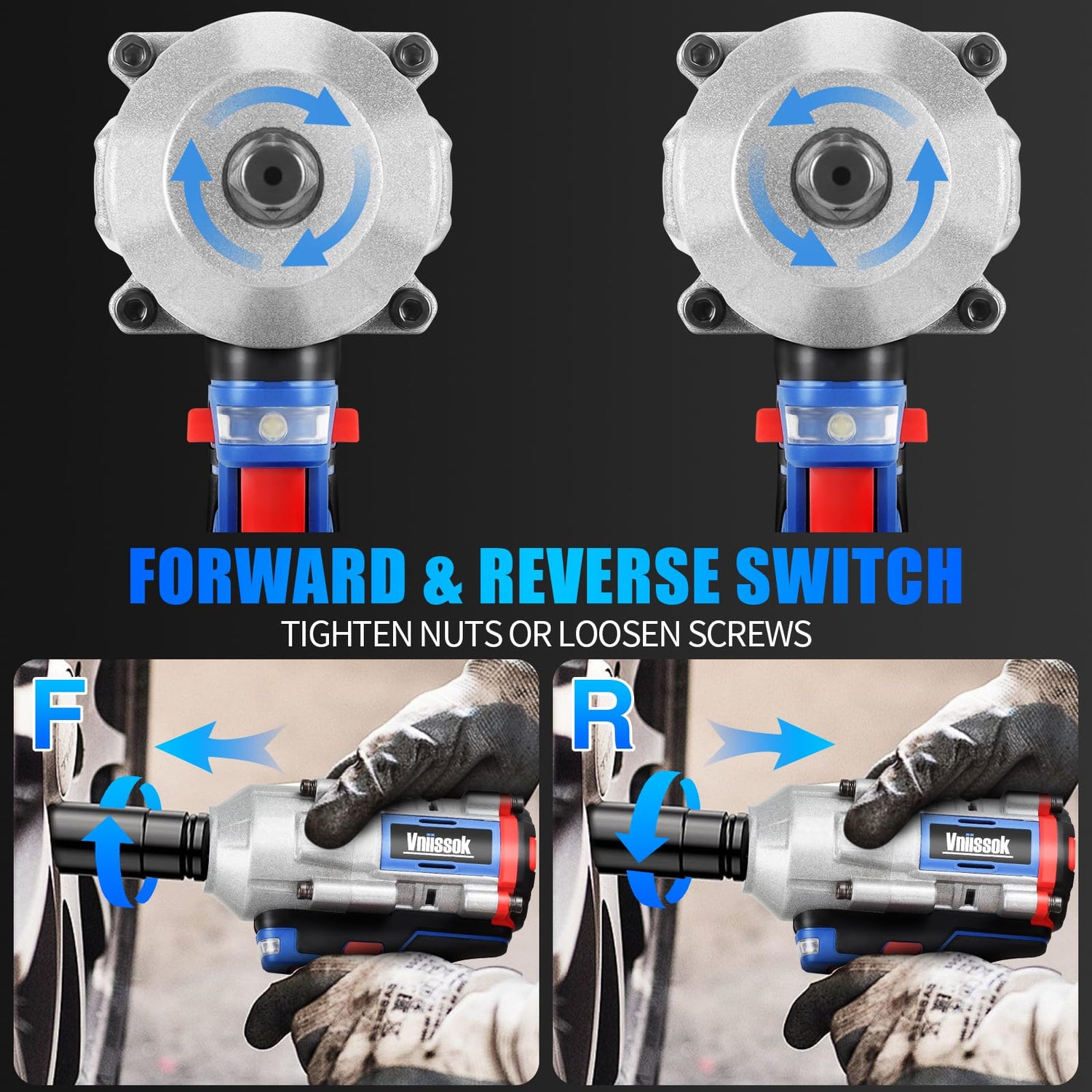 - 1000N.m Real Performance Beast - The most striking thing about the Vniiissok electric brushless impact wrench is its peak torque of 1000N.m, this is a force to be reckoned with and will beat 98% of impact wrenches on the market. Our power impact wrench effortlessly loosens or tightens various types of bolts or nuts, ideal for heavy-duty maintenance, construction projects, pickup trucks, rusty nut bolts, truck RVs,car repairs.