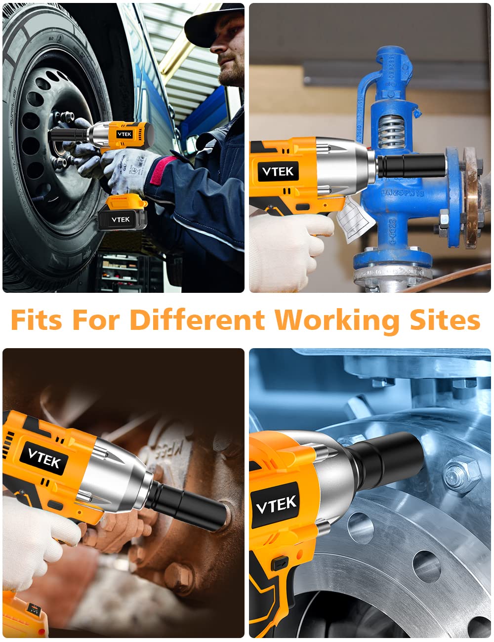 • 【Brushless Motor 】VTEK Cordless Impact Wrench with brushless motor has more excellent performance and durability.Brushless Motor not just offers less noise and no sparks. but also offer the cordless wrench with longer lifespan