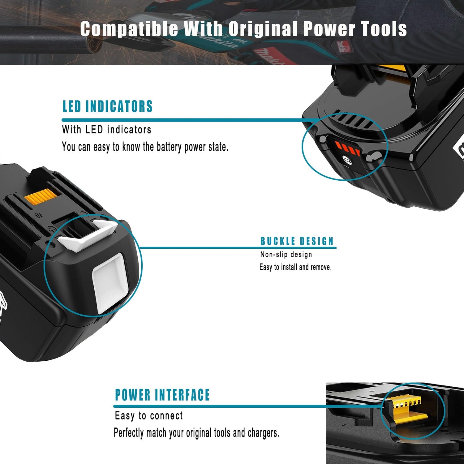 - 100% Compatibility:This Replacement for Makita 18 Volt Battery Compatible With Original Cordless Power Tools And Chargers