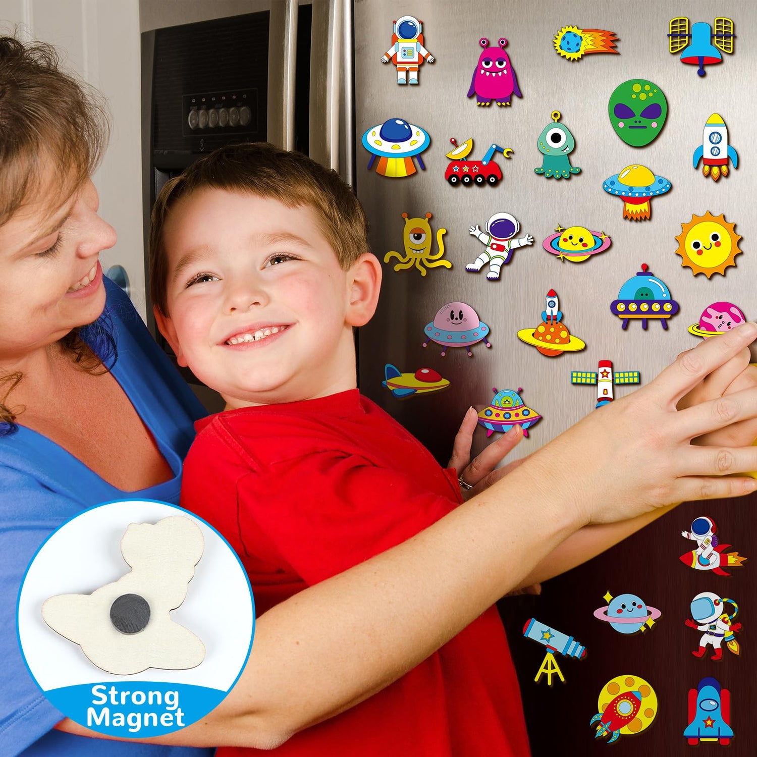 - Eye-catching outer space design: Wooden Outer space themed party favors magnets to paint for kids are designed with the outer space theme, featuring various patterns, such as astronauts, planets, rocket ships, aliens, planets, moon, and stars, easy to catch student's attention. The outer space crafts kit enhances kid’s hand-eye coordination, concentration, and precision while engaging in a fun and artistic coloring project.