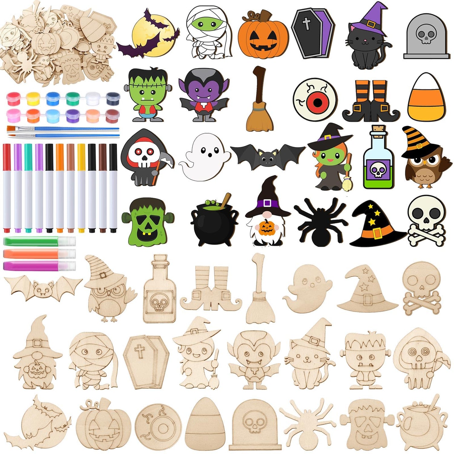 - What You Get: our DIY Halloween wooden magnets kit includes 24 unfinished pieces of wood, each piece is shaped differently, there are ghosts, pumpkins, skeletons, spiders, candy corn and other elements, with magnets attached to the back, with brushes and paint; This bulk craft kit provides endless creativity and entertainment, making it a nice choice for painting activities and wooden painting crafts