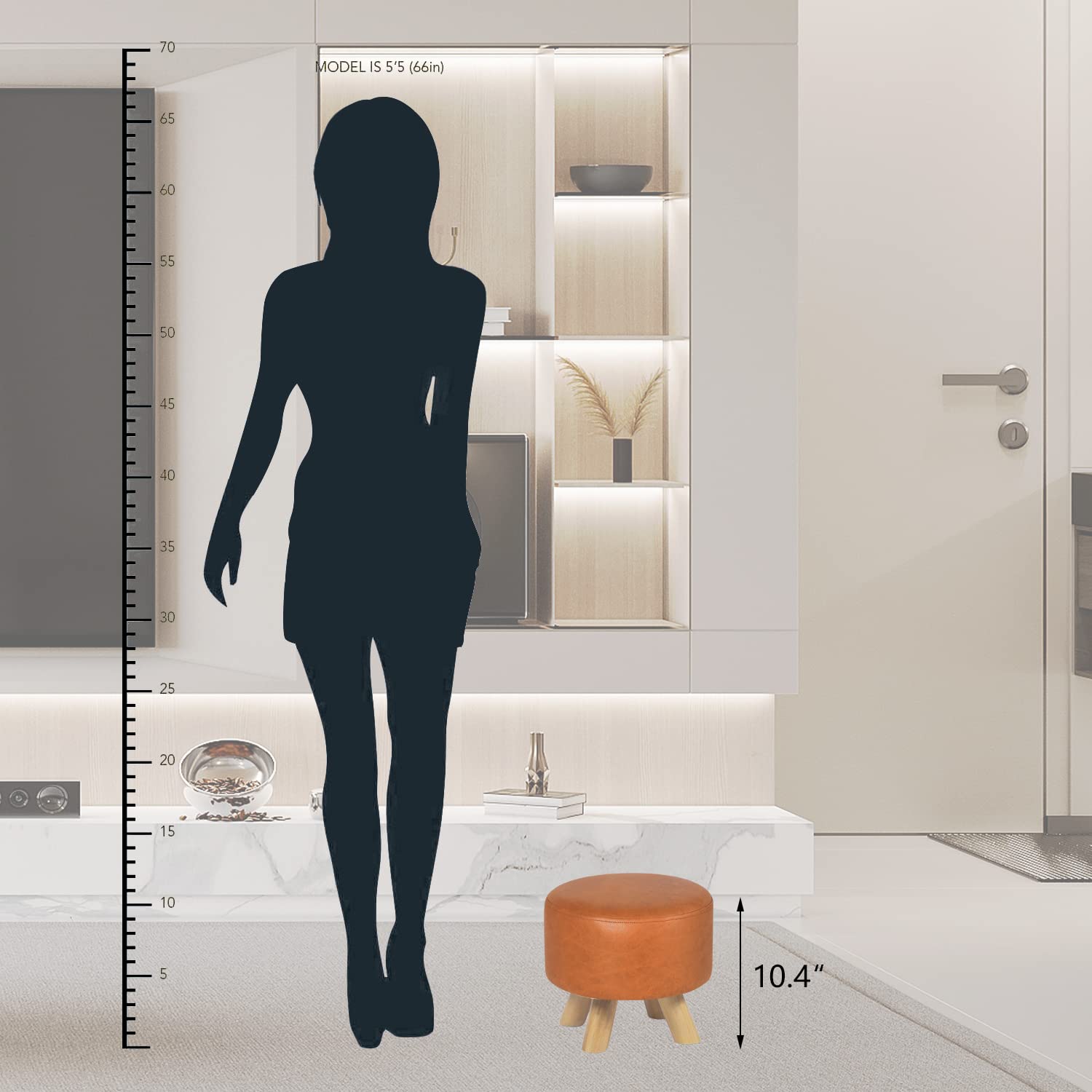 Asense Small Round Ottoman Foot Rest Stool Fabric Padded Seat Footstool Ottoman with Wooden Legs (Dark Orange,Fabric)
