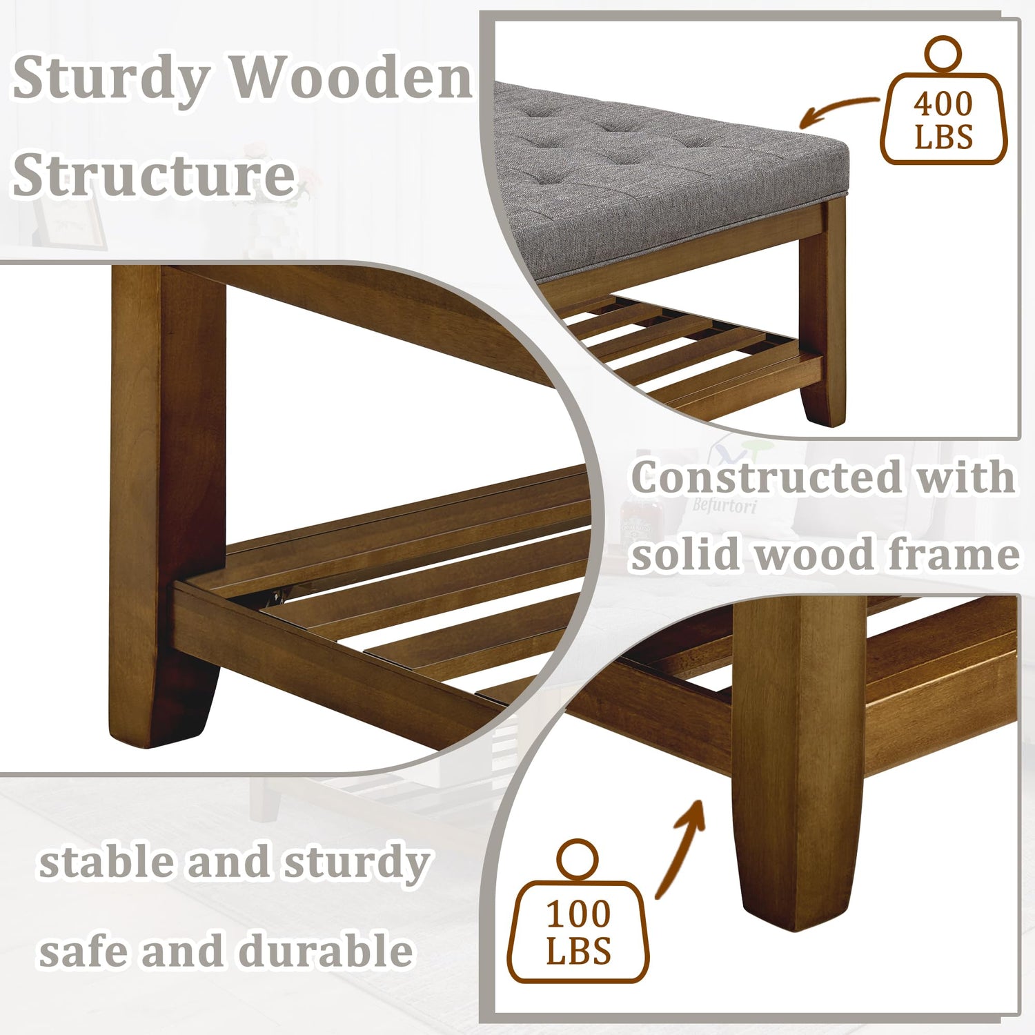 • Sturdy Construction: Stable wooden frame, the top surface can support up to 400 Lbs, the open storage shelf can support up to 100 Lbs. The dimensions of square ottoman: 33.5" Wx33.5" Dx18.5" H