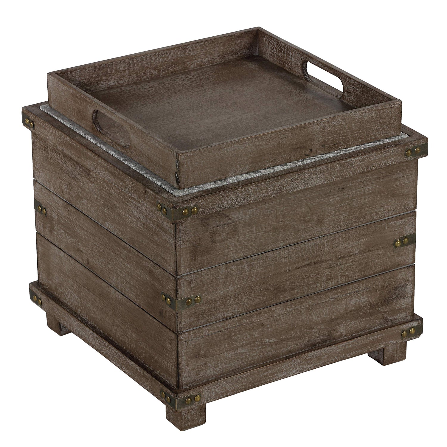 Details: The Cortesi Home scusset storage tray ottoman is as clever as it is stylish. Featuring a plushy padded top that flips over into a convenient serving tray for snacks and drinks, As well as a spacious storage compartment for items that still need a home. The light Grey fabric and weathered driftwood exterior bring a sophisticated rustic feel into any room, and is perfectly paired with any decor style. The high density foam cushion is stylish yet comfortable, making the ottoman Perfect as extra seating for unexpected guests, or a place to put your feet up after a long day. Dimensions: 15. 75"W x 15. 75"L x 15. 5"H