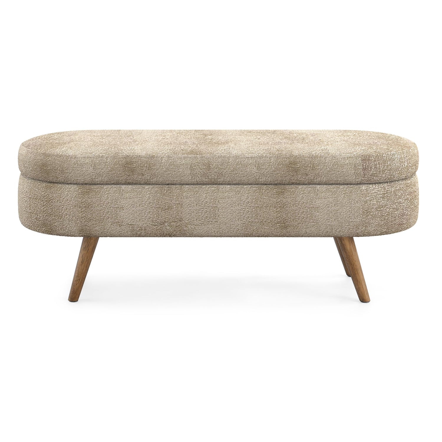 ECLYL Oval Storage Bench 43.5" Linen Fabric Upholstered Entryway Bench with Solid Wood Legs Ottoman Bench Indoor Bench for Living Room/Bedroom/End of Bed/Entryway (Brown)