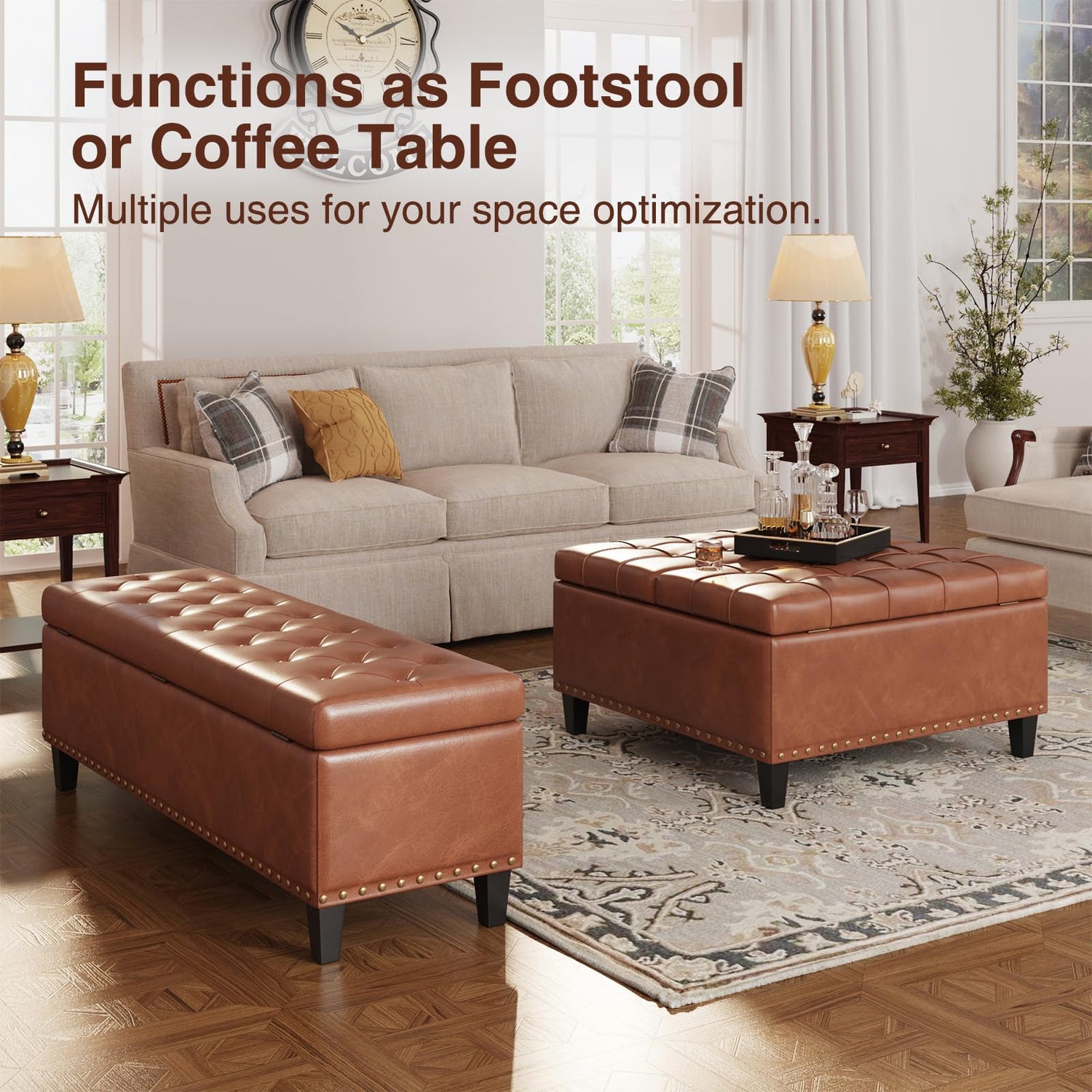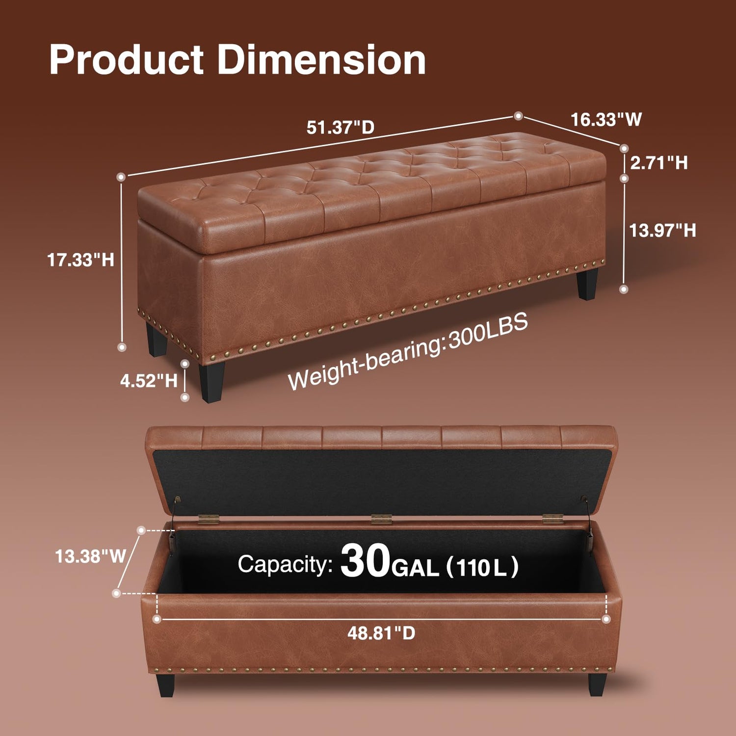 FiveWillowise Storage Bench, 51-Inch Large Storage Ottoman, 30 Gallons, Modern Faux Leather Ottoman with Storage, Rectangle Storage Ottoman Bench for Bedroom, Living Room, Entryway, Hallway, Brown