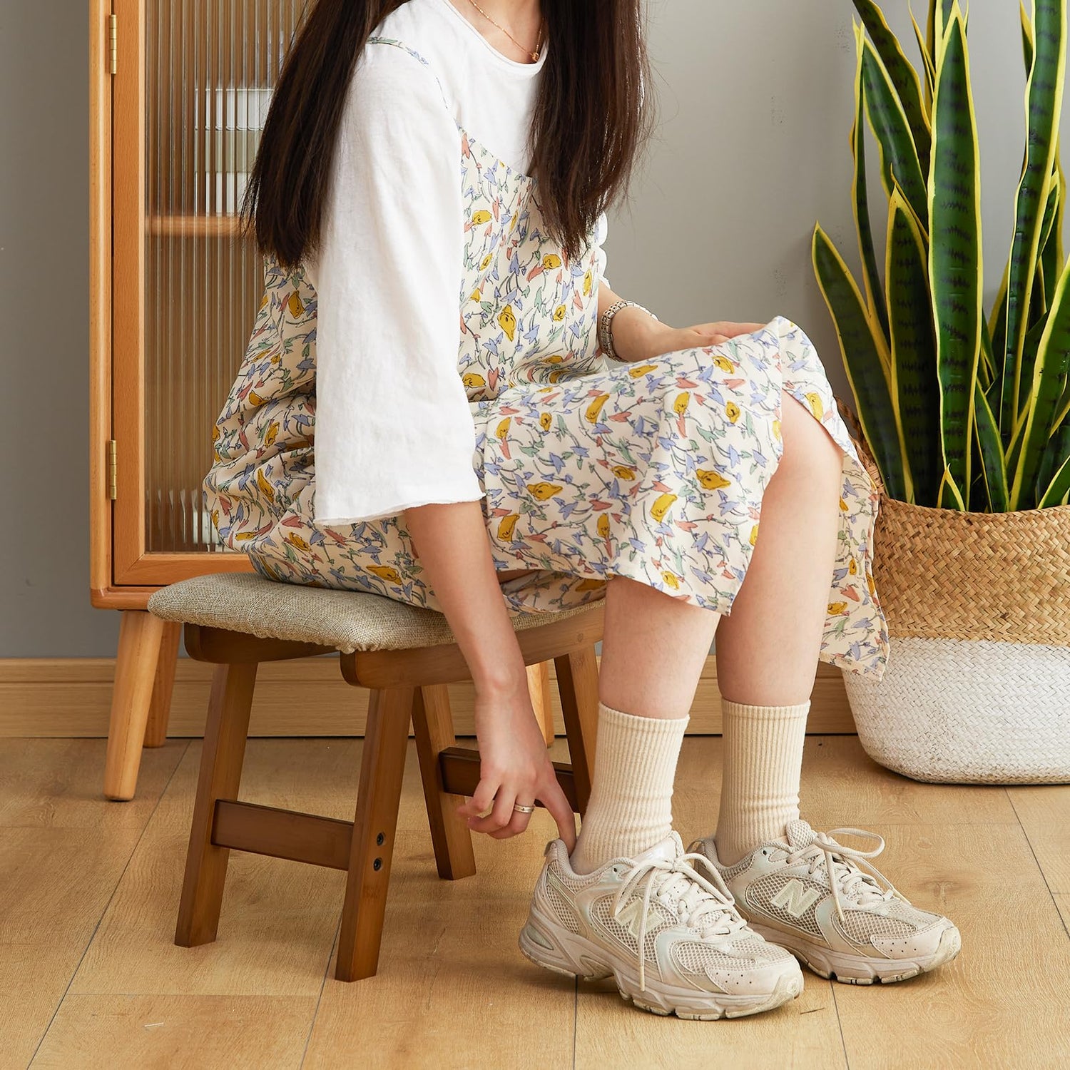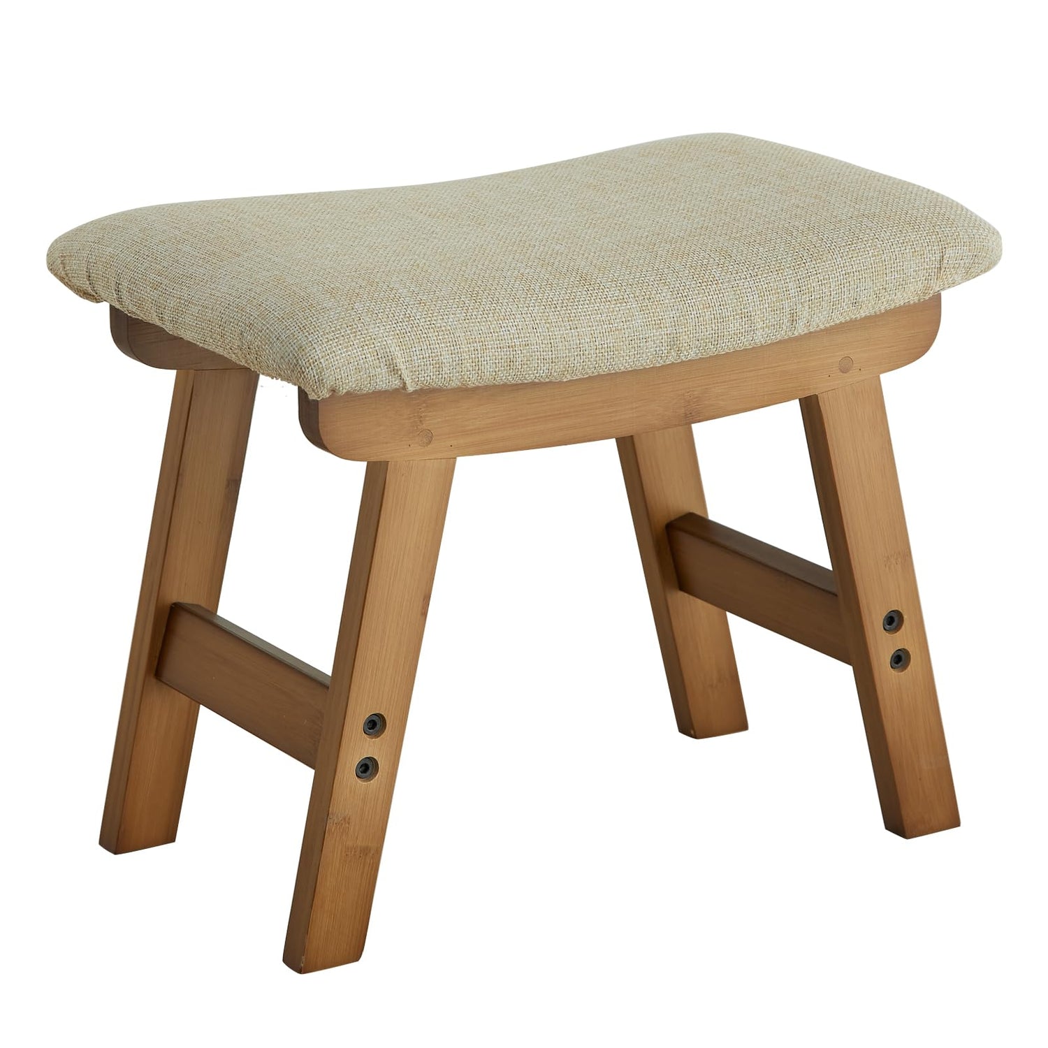 Foot Stool,Ottoman Foot Rest,Bamboo Foot Stool Under Desk,Small Stool for Living Room, Bedroom and Kitchen (Brown legs - Beige stool surface)