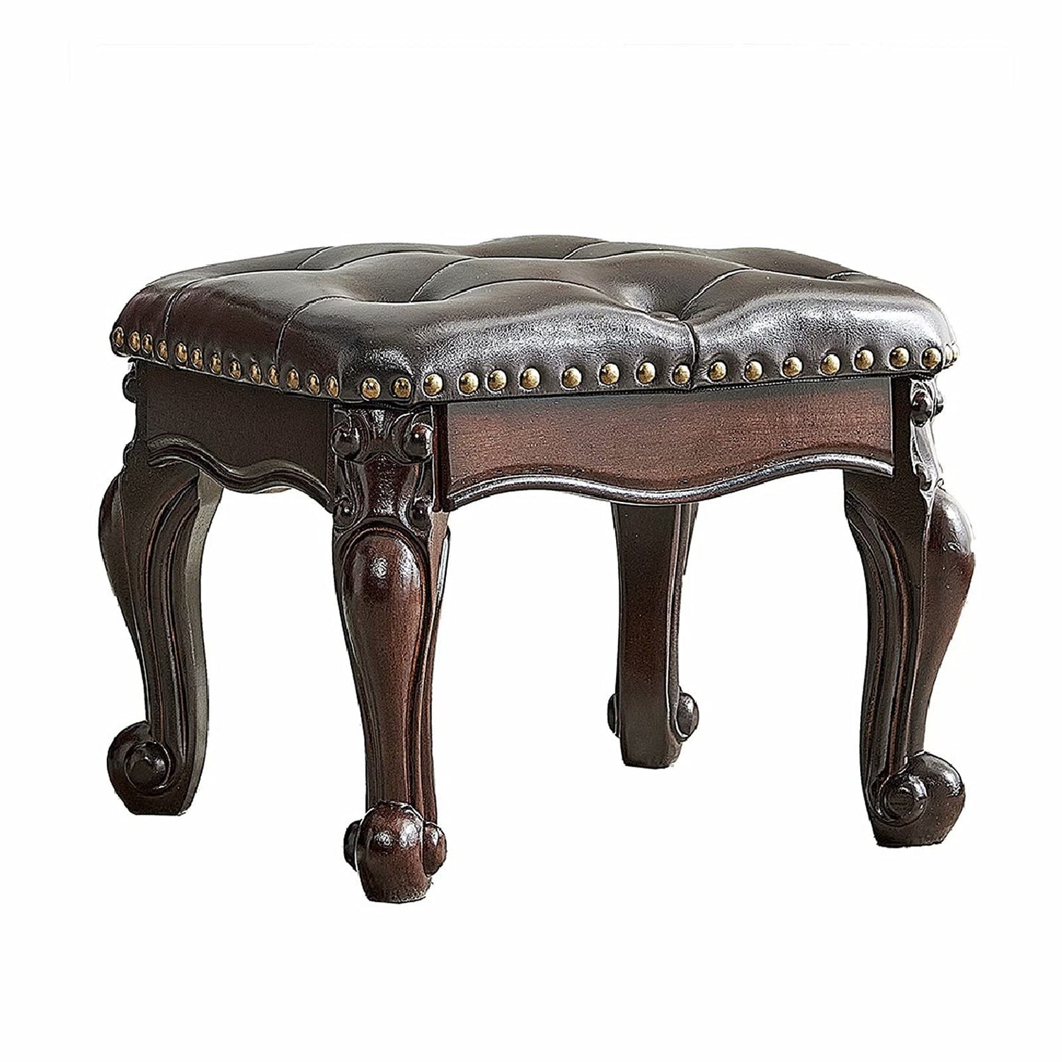 - Vintage Design: The wooden footstool are matched with a red-brown microfiber leather cushion, buttons on the cushion increase the fashion sense of the stool, and the rivets around the cushion make the stool more stable
