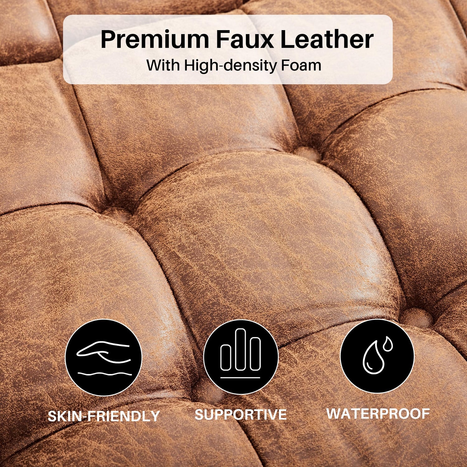 Redlife 35 Inch Large Square Storage Ottoman Bench, Storage Ottoman Coffee Table Large Square Ottoman with Storage Lift Top Tufted Storage Ottoman for Living Room (Brown Leathaire)