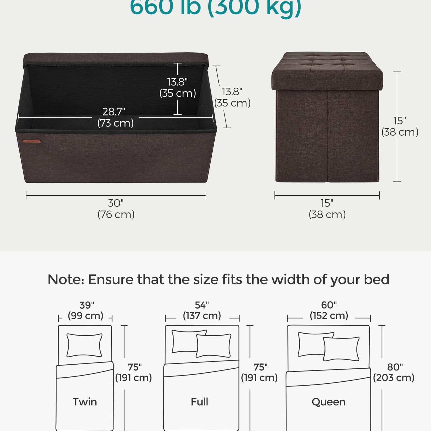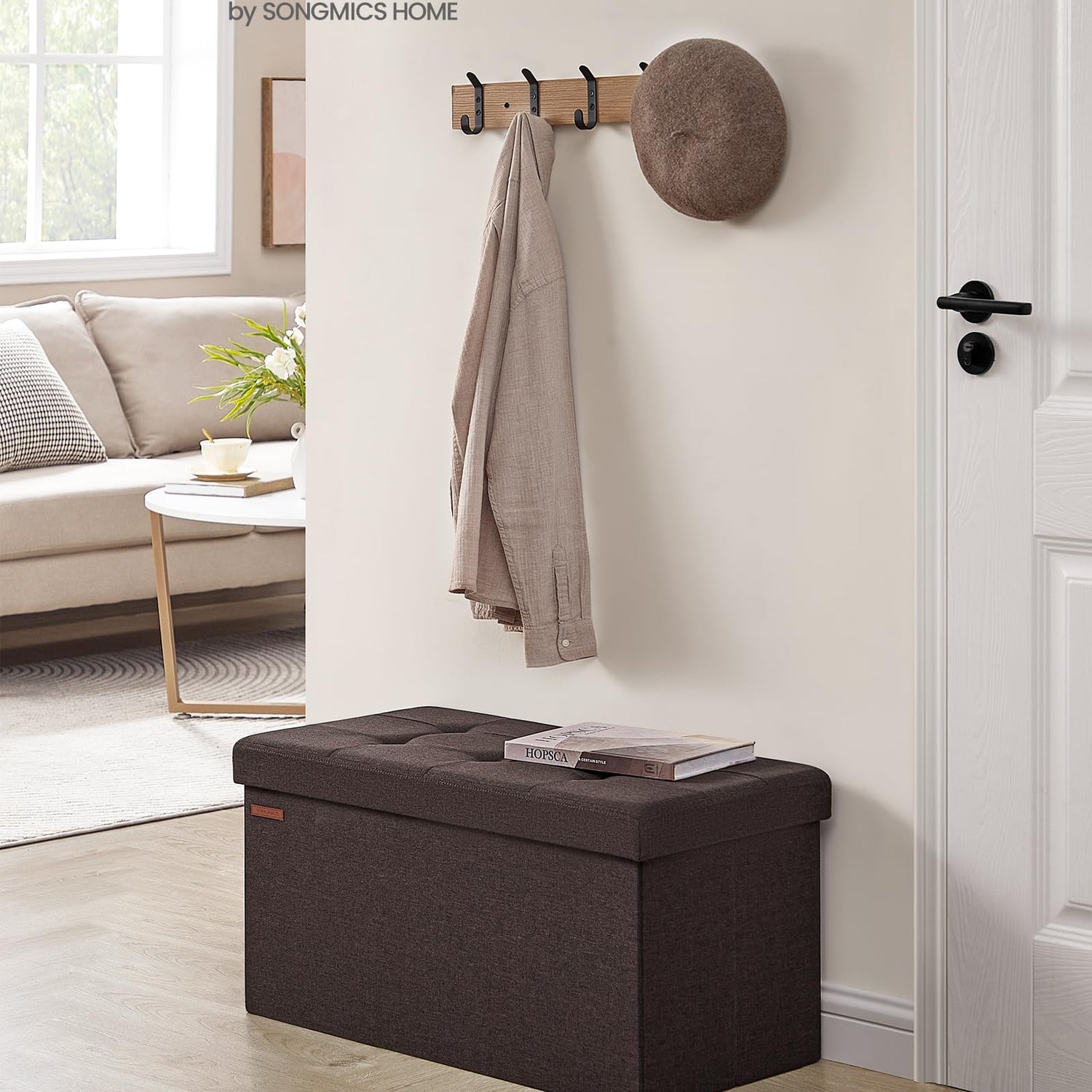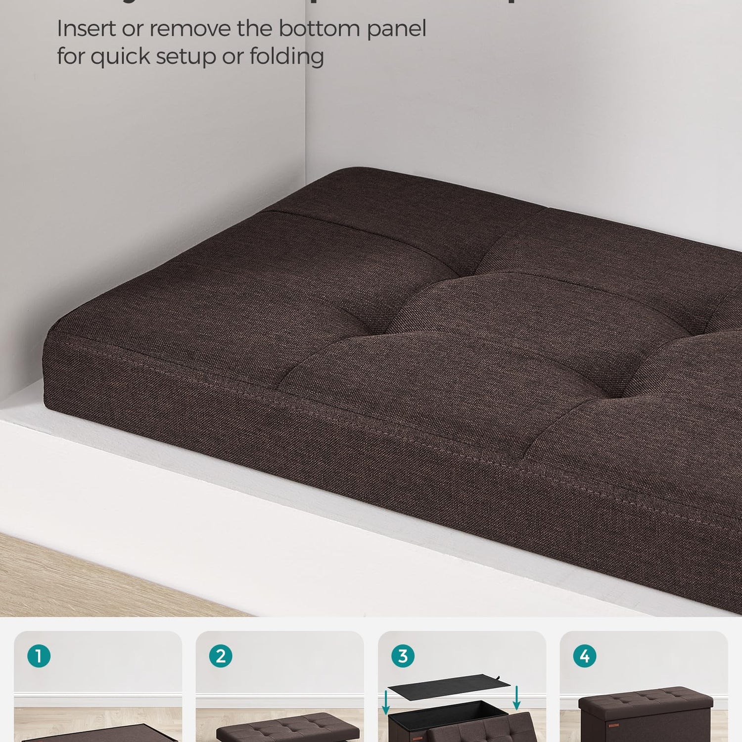 SONGMICS Mazie Collection - 30 Inches Folding Storage Ottoman Bench, Ottoman Foot Rest, End of Bed Bench, Storage Chest, Load 660 lb, for Living Room, Bedroom, Entryway, Brown ULSF047K02