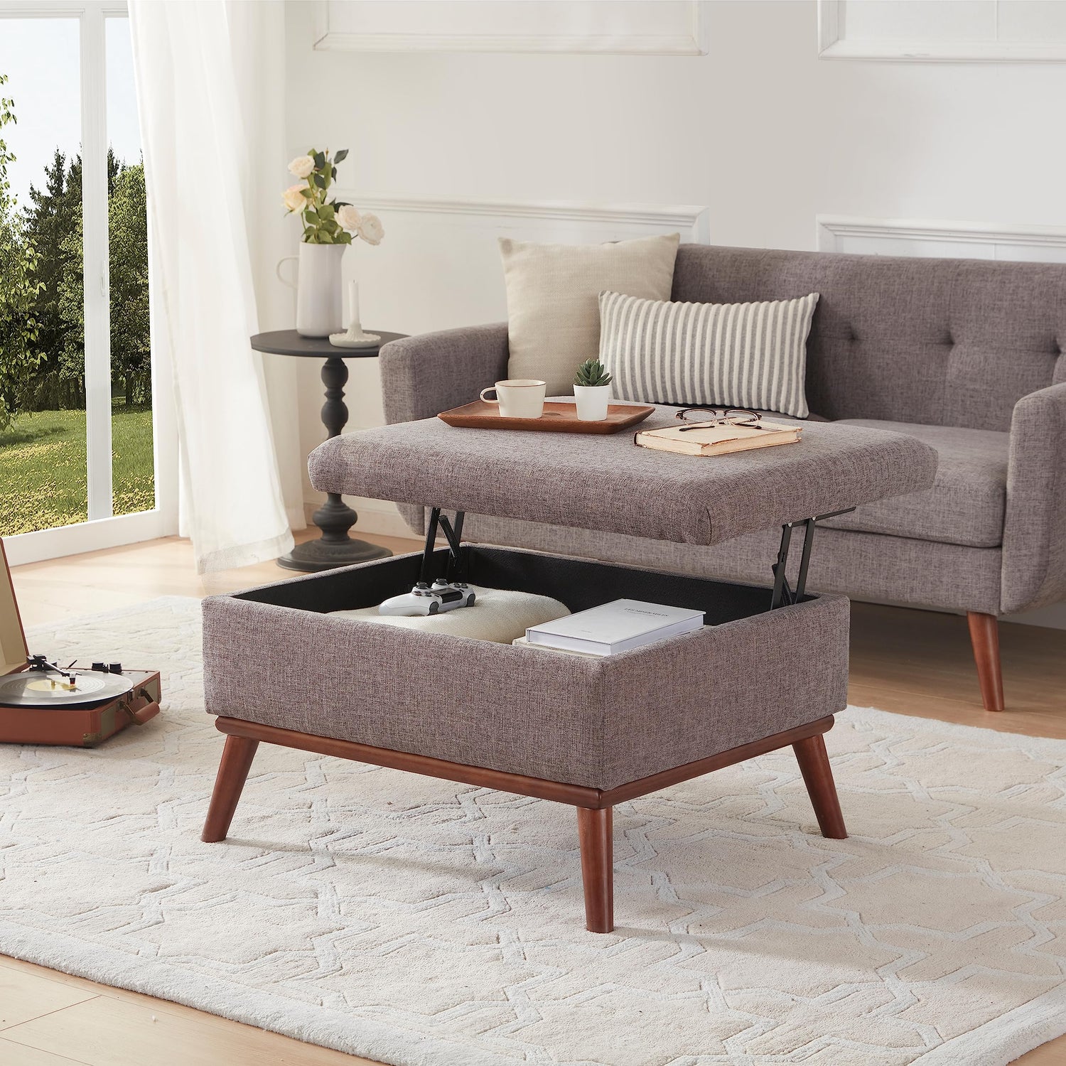 Tbfit Large Ottoman with Storage, 28.3“ Mid Century Modern Rectangle Coffee Table with Lid Lifting Function and High Wooden Legs, Oversized Storage Ottomans for Living Room, Office Room