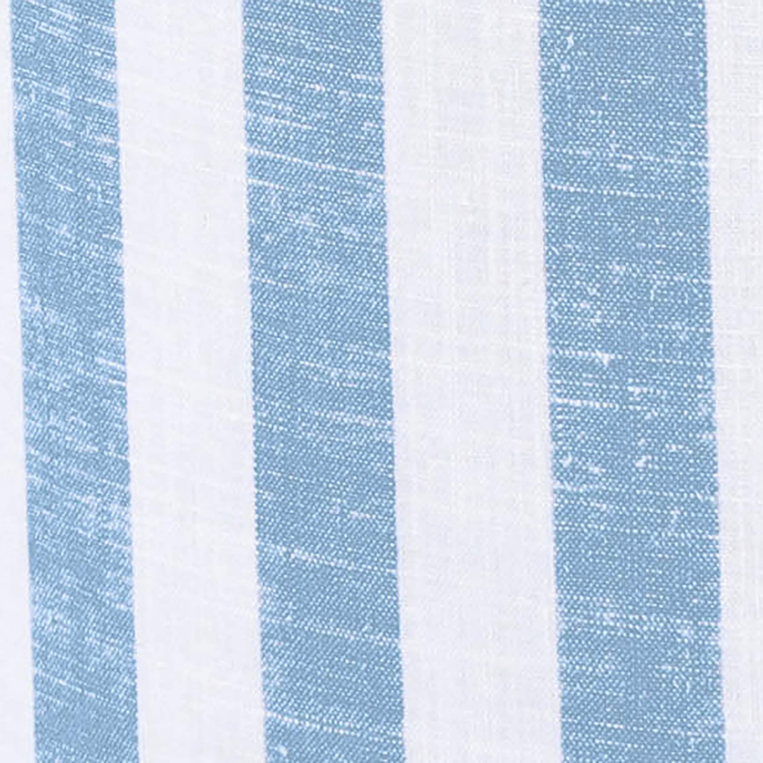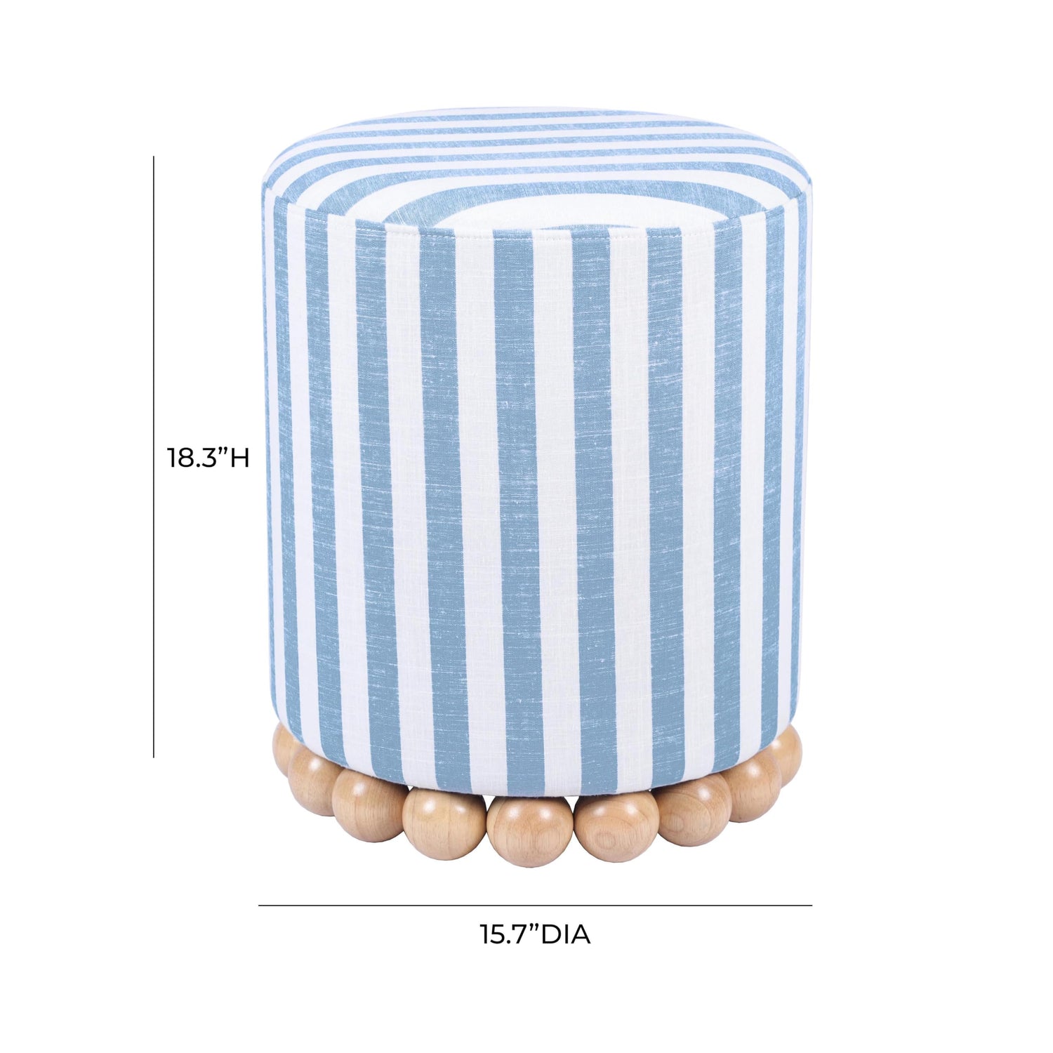 Tov Furniture Dex Pastel Blue Striped Linen Round Ottoman with Wooden Base