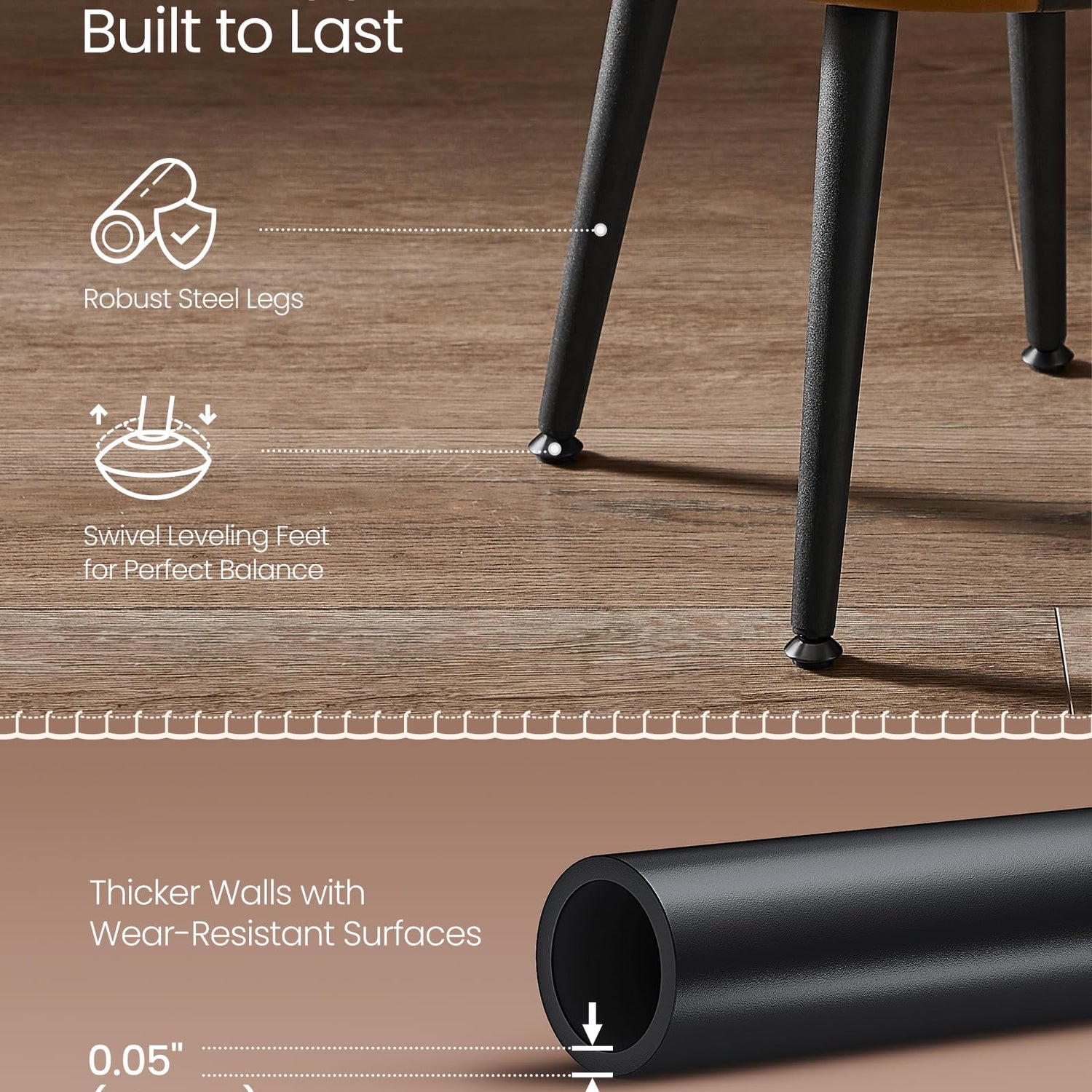 - v[Built to Last] This vanity chair is constructed with 4 sturdy steel legs, reinforced with a 1.2 mm thickened wall, and swivel leveling feet. You can confidently rely on it to support up to 330 lb (150 kg)