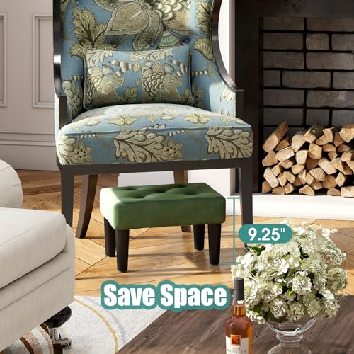viewcare Ottoman Foot Stool, Green Small Ottoman footrest, Velvet Soft Footrest Ottoman with Wood Legs, Sofa Footrest Extra Seating for Living Room Entryway Office