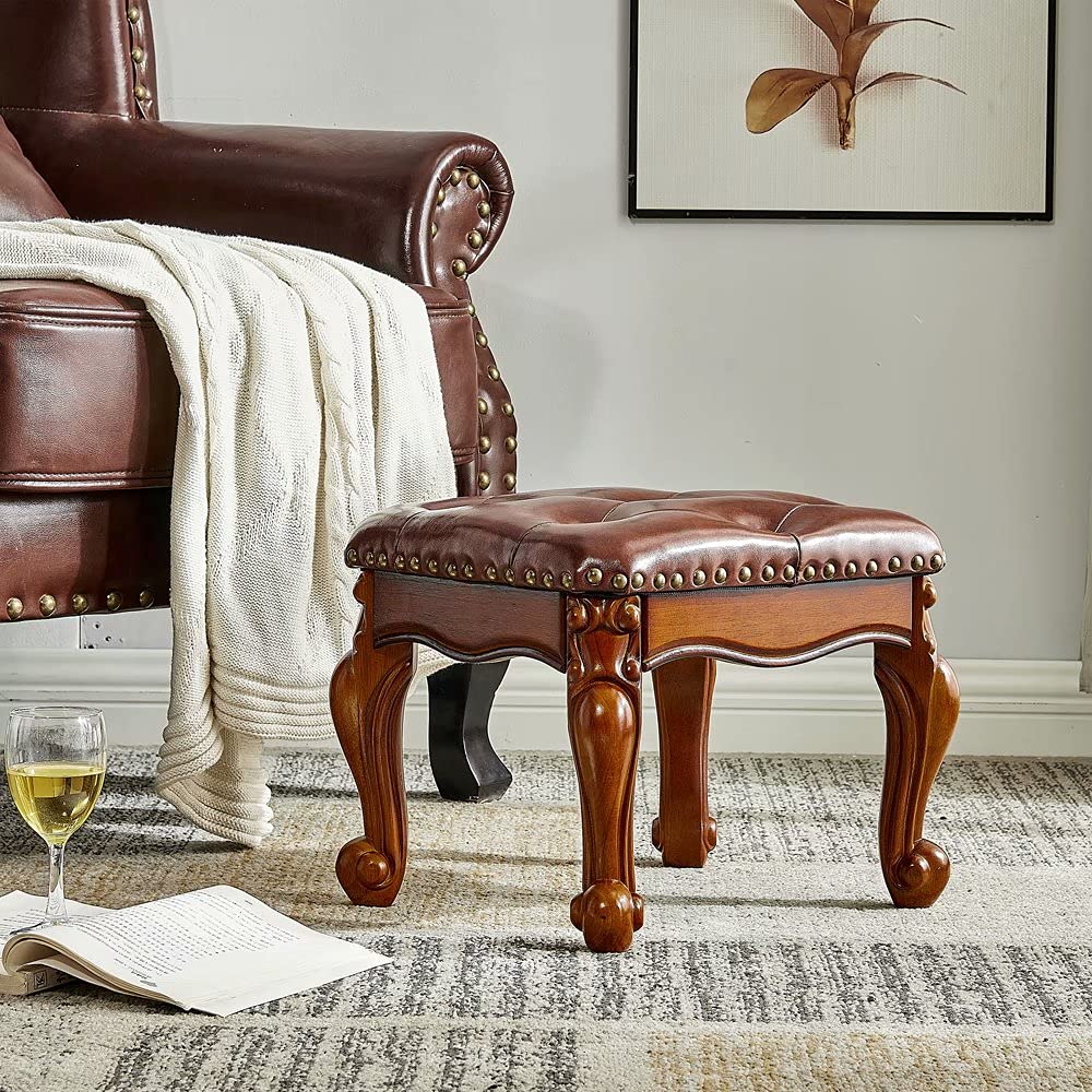 • High-Quality Materials: The foot stool is made of 100 % solid wood, cushion is used high-quality microfiber abrasion-resistant leather, and internal filled by high-density and high-elastic sponge.