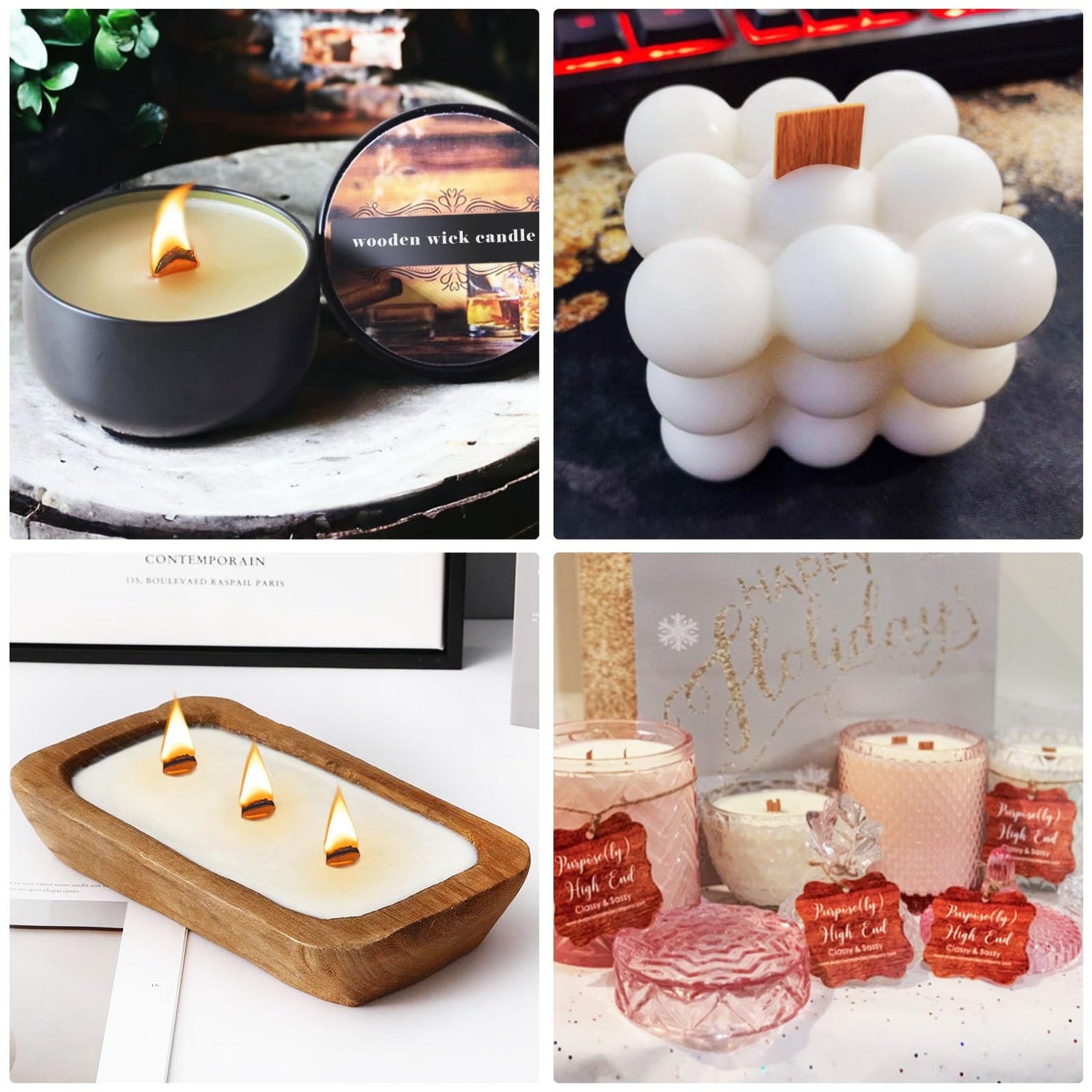 • Versatile: Meet your wood wick candle making needs, such as paraffin, beeswax, and soy wax. The natural candle wick has a beautiful and warm flame, creating a better ambiance. You can use them for casual interior decor, party decoration, DIY projects, and many other purposes.