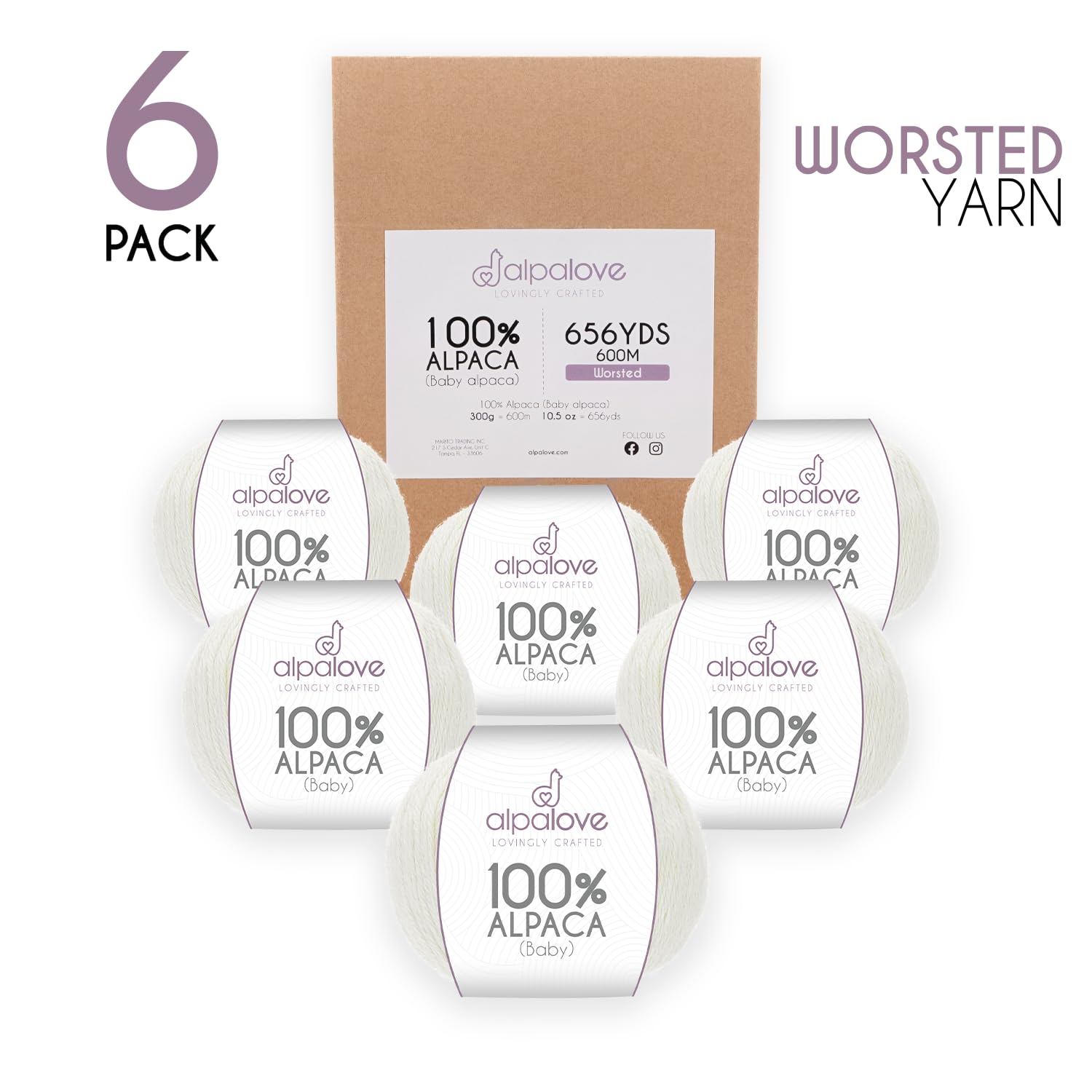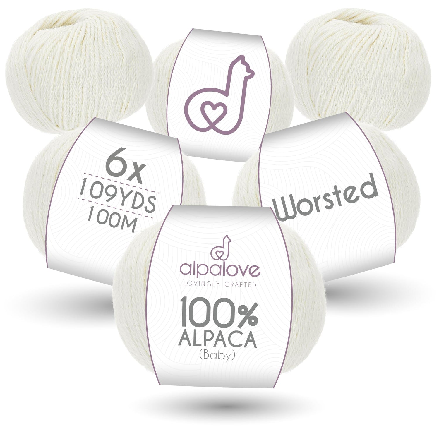 ALPALOVE Worsted Set (6 x 1.75 oz) Super Soft Baby Alpaca Knitting Yarn Ecru 656 Yards