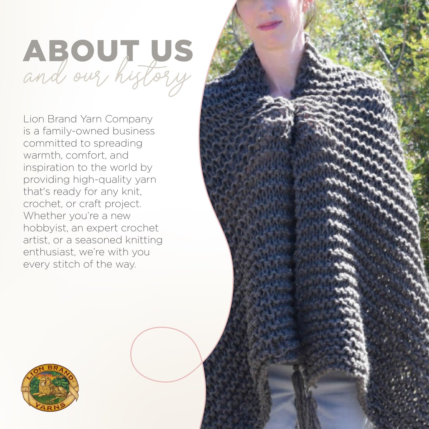 Our mission at Lion Brand Yarn Company is to spread warmth, comfort, and inspiration to the world by providing products and social engagement that promote the joy of knitting, crocheting, and weaving. We offer high-quality yarn varieties in unique colors and provide patterns and project ideas to inspire you to create and express yourself. Whether you’re a new hobbyist, an expert crochet artist, or a seasoned knitting enthusiast, we’re with you every stitch of the way.