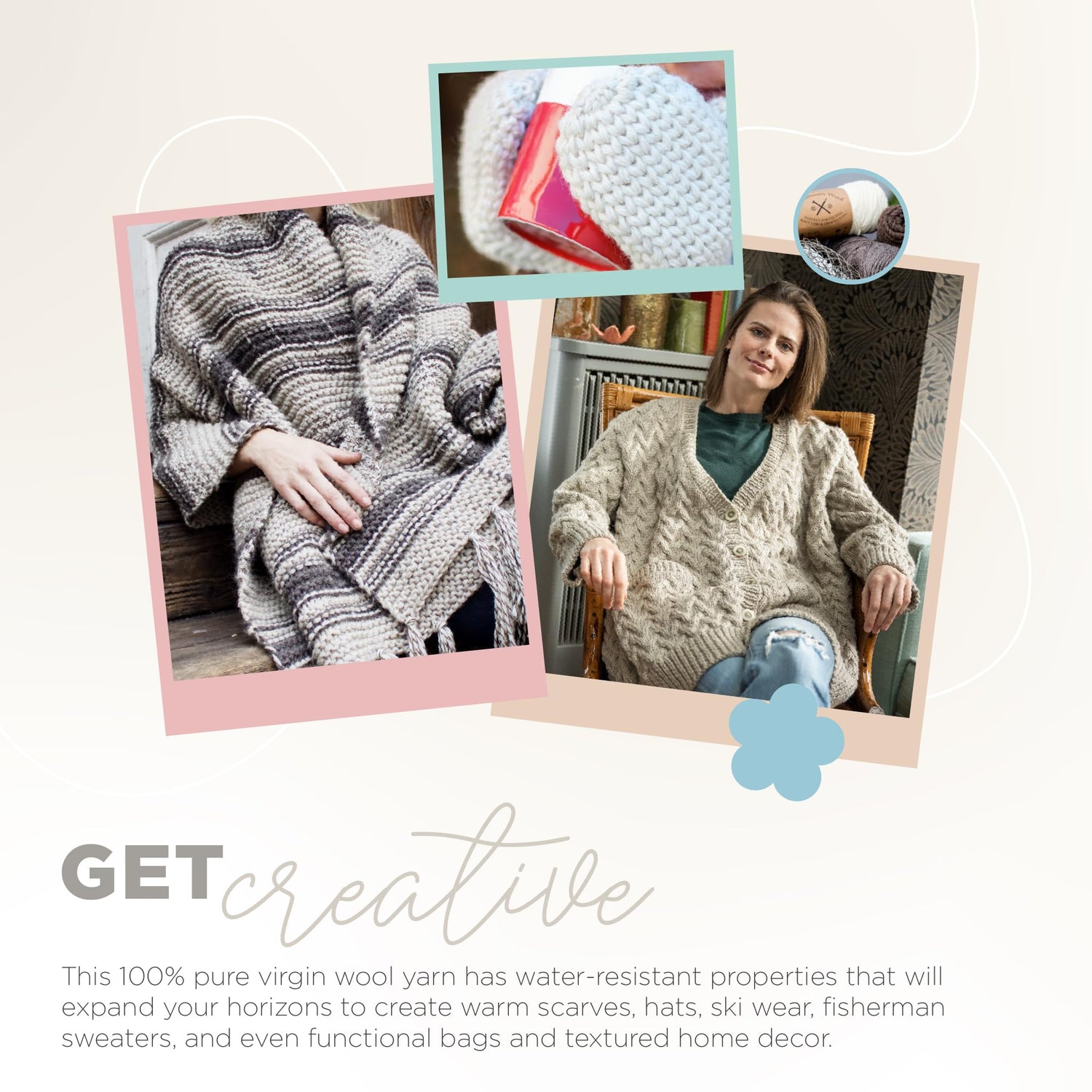 - YARN FOR KNITTING: This yarn comes in 100% pure virgin wool options as well as wool blends. The natural lanolin oil makes it an ideal knit and crochet yarn for creating warm scarves, hats, ski-wear, fisherman sweaters, bags, and textured decor.