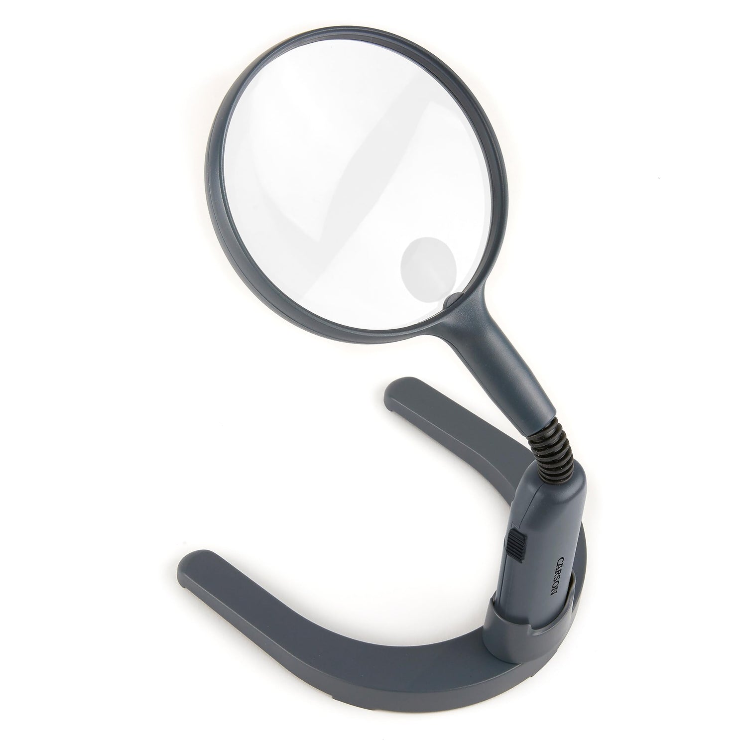 - Fully Adjustable Hand-Held or Hands Free Magnifier Lamp with Scratch Resistant Large Acrylic Lens ; Compact and Lightweight ; Perfect Low Vision Aide