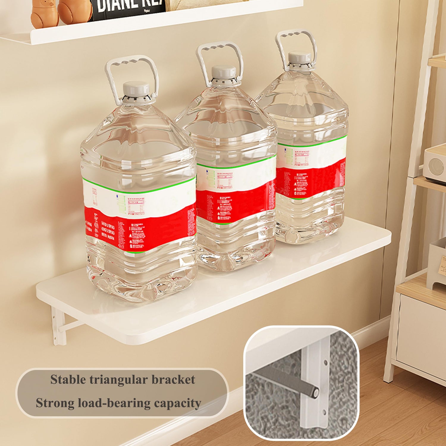 The folding wall table does easy installation required and is supported by 0.7 "thick density board,which is very sturdy, It's also easy to clean and maintain, ensuring long-lasting use. The triangle structure of the brackets built into this folding wall desk reinforces structural stability, providing you with a firm, locked in, and substantial surface.with a modern and minimalist design that will fit seamlessly into any decor.