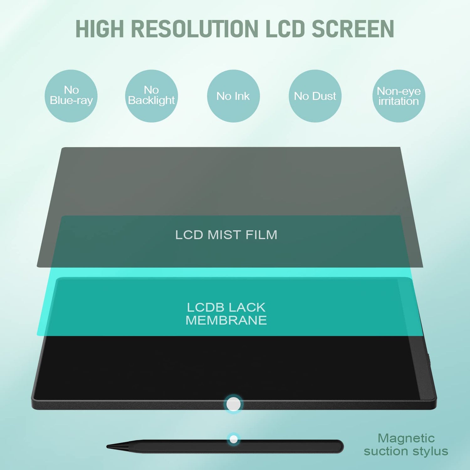 - 【Office Gadgets and Message Board】LCD writing tablet can be your digital planner,electronic notebook,fathers day gifts and office workers. The e ink tablet with one-click clear key is electronic notepad writing tablet perfect for taking quick notes, marking up documents or sketching out ideas.