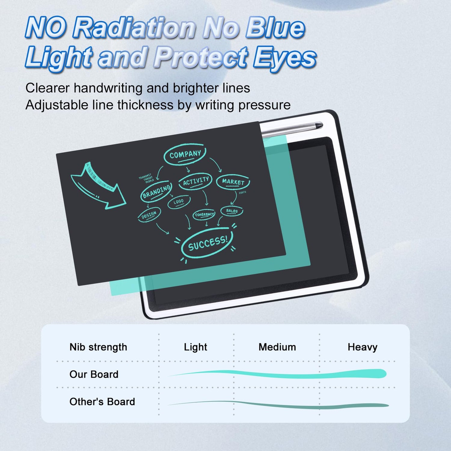 - Wide Application & Perfect for All Ages: The 10 Inch LCD writing Board is suitable for notes, drafts,arithmetic, spelling and learning assistants. It can be used as a memo board, drawing board, notepad, office writing board, graphic aids, writing pad, etc. It is a good helper and perfect gift for children, students, but also for teachers, designers, businessmen, etc.