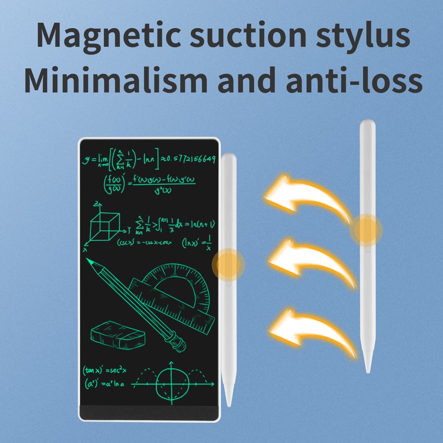 - 【Lock & One-Touch Erase】 Featuring convenient lock/unlock switch to prevent accidental erasures - your notes stay safe until you want them gone. Each side has its own erase button for instant clearing when unlocked. The magnetic stylus can trigger erasure by touching the designated area, making operation effortless and intuitive.